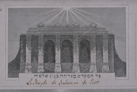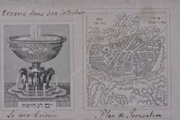 Plan du temple; L'hotel (sic) d'olocauste; Le Temple de Salomon de l'est; Soutane avec l'autel des parfumes; Lavoir; Jerusalem au lever du soleil; Pains de proportion avec le chaudelier; L'arche d'aliance; Jerusalem de l'ouest; Jerusalem de l'est.