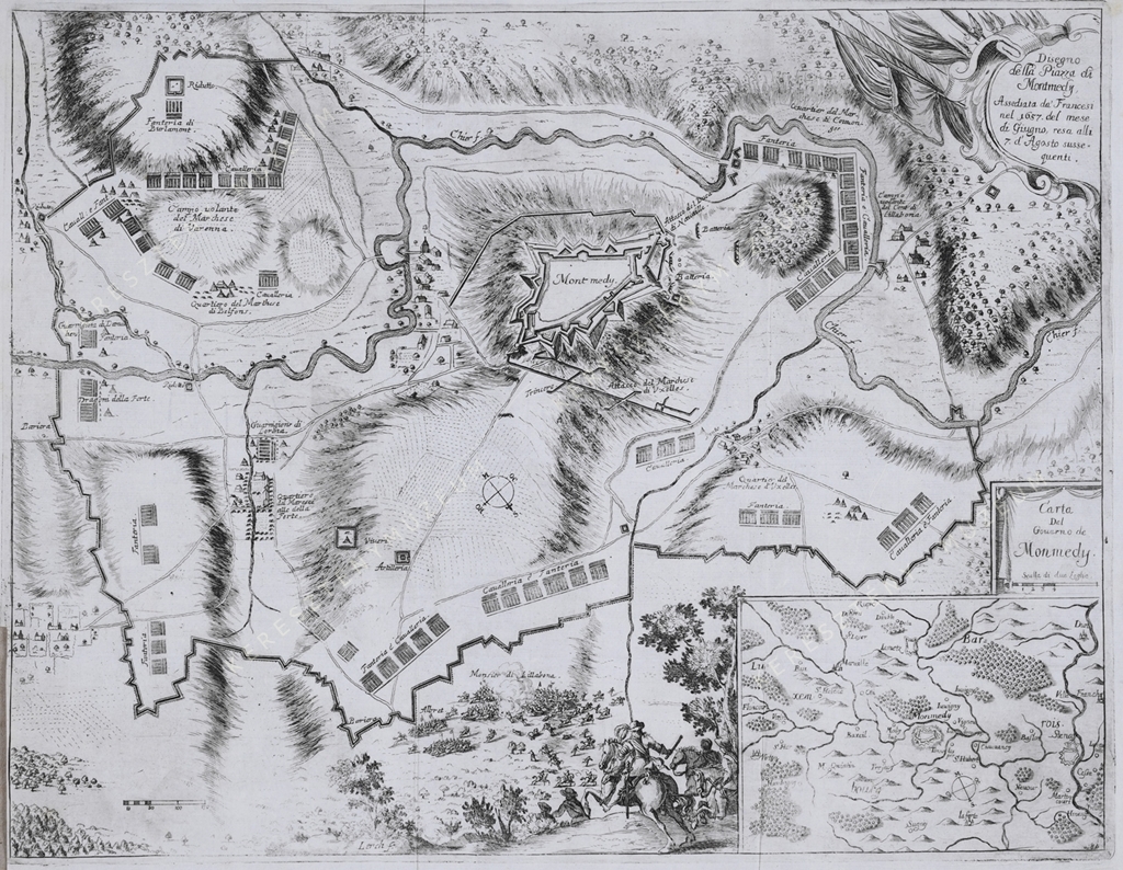 Disegne della Piazza di Monmedy assediata da Francesi nel 1657 del mese di Giugno, resa alli 7. d'Agosto sussequenti.