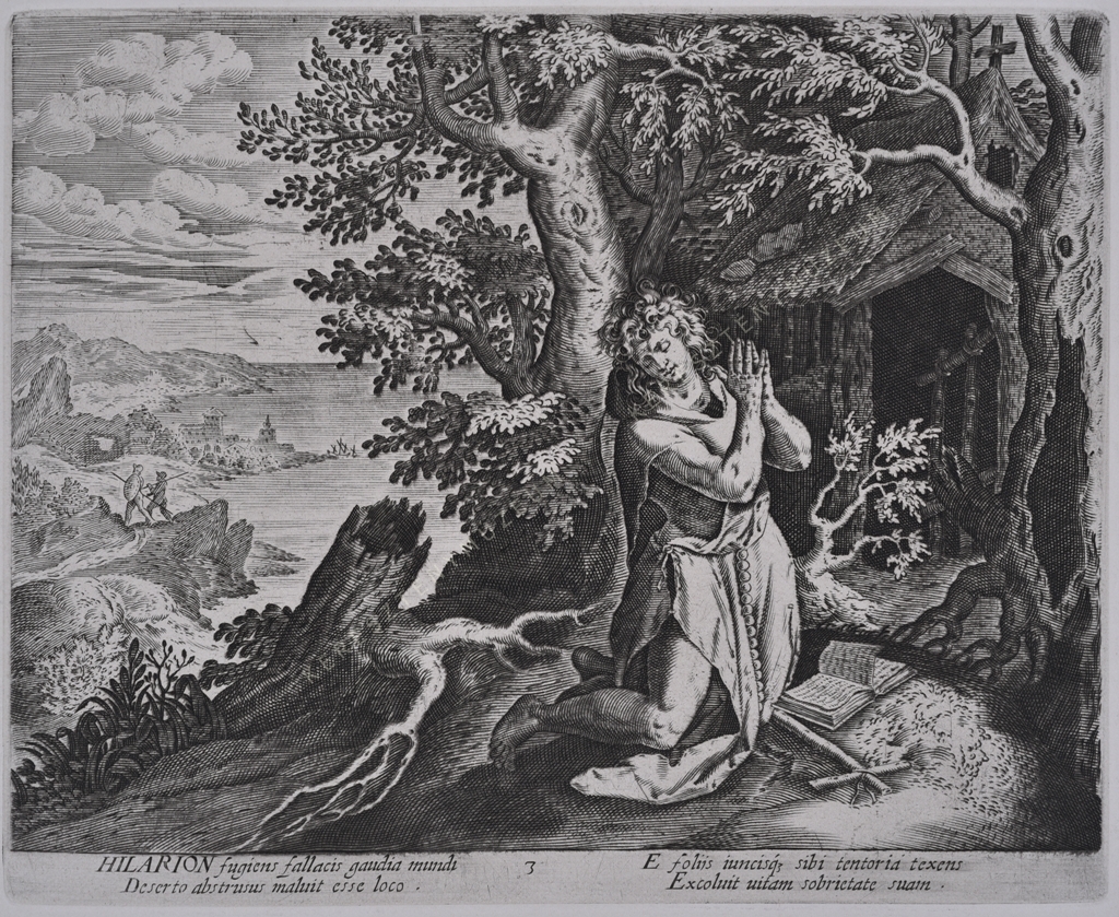 HILARION fugiens fallacis gaudia mundi deserto abstrusus maluit esse loco. E folijs iuncisque sibi tentoria texens Excoluit uitam sobrietate suam.