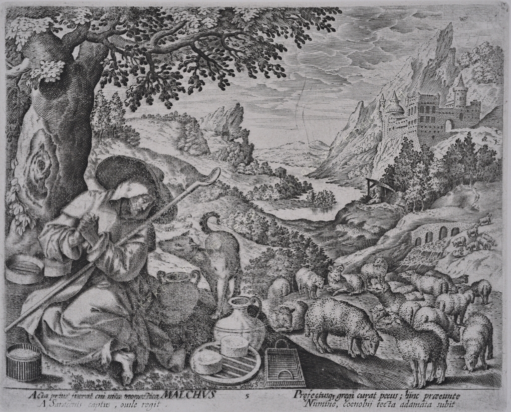 Acta prius fuerat cui vita monastica, MALCHVS A Saracenis captus, ouile regit. Prefectusque gregi curat pecus; hinc praeeunte Numine, coenobij tecta adamata subit.