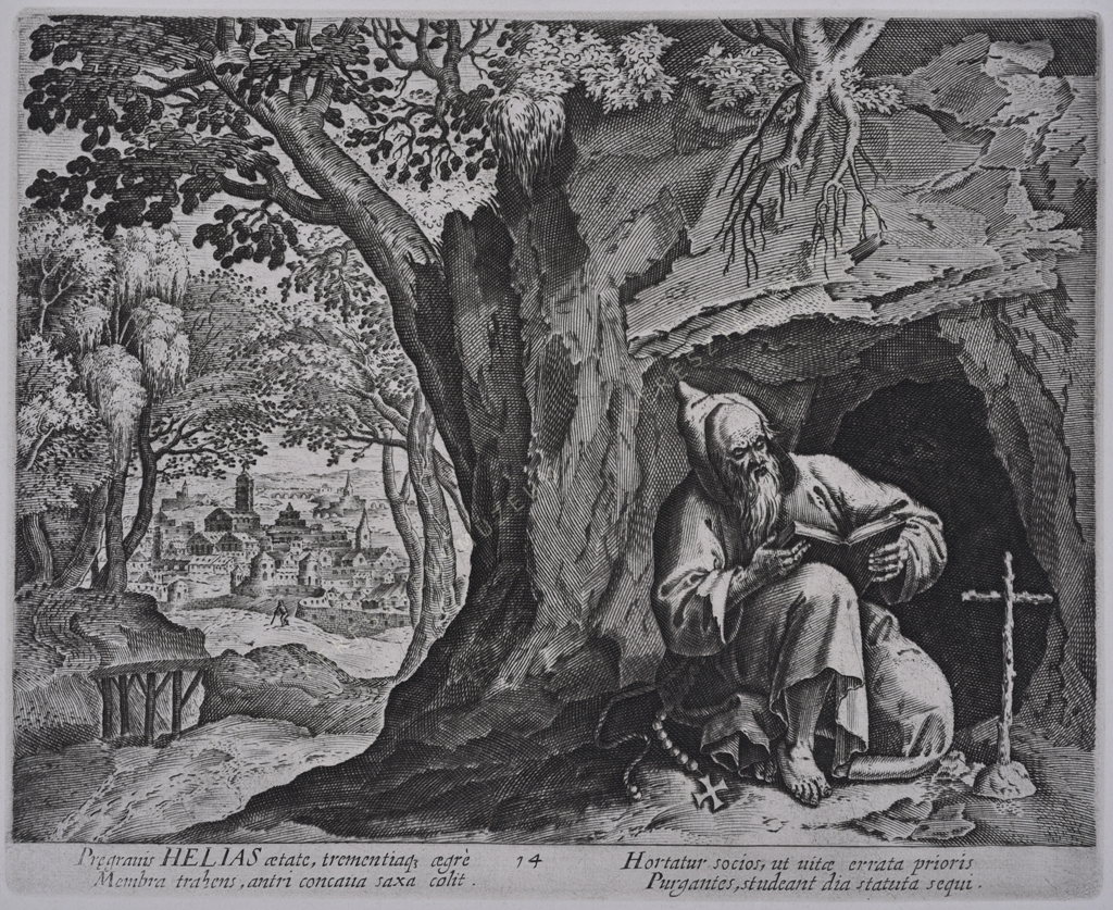 Praegrauis HELIAS aetate, trementiaquae aegre Membra trahens, antri concaua saxa colit. Hortatur socios, ut uitae errata prioris Purgantes, studeant dia statuta sequi.