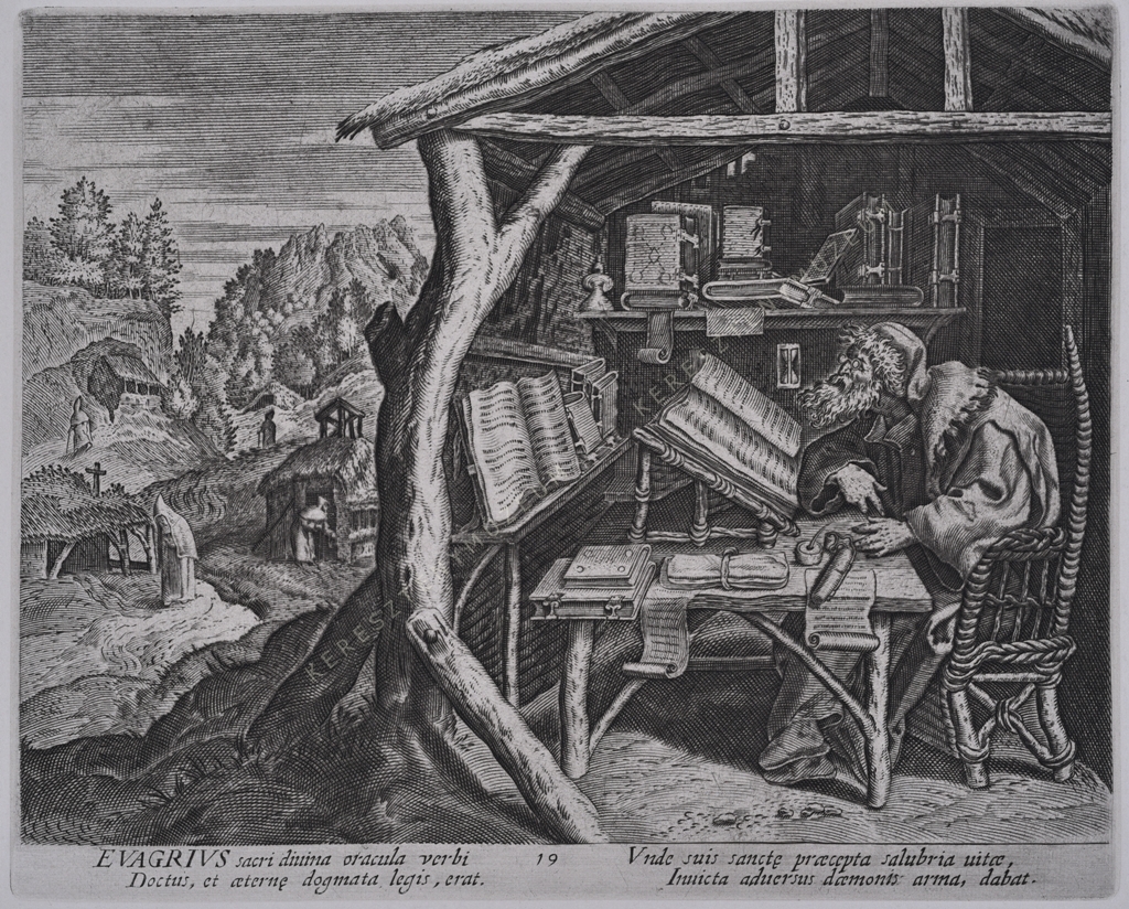 EVAGRIVS sacri diuina oracula verbi Doctus et aeternae dogmata legis, erat. Vnde suis sanctae praecepta salubria uitae, Inuicta aduersus daemonis arma, dabat.