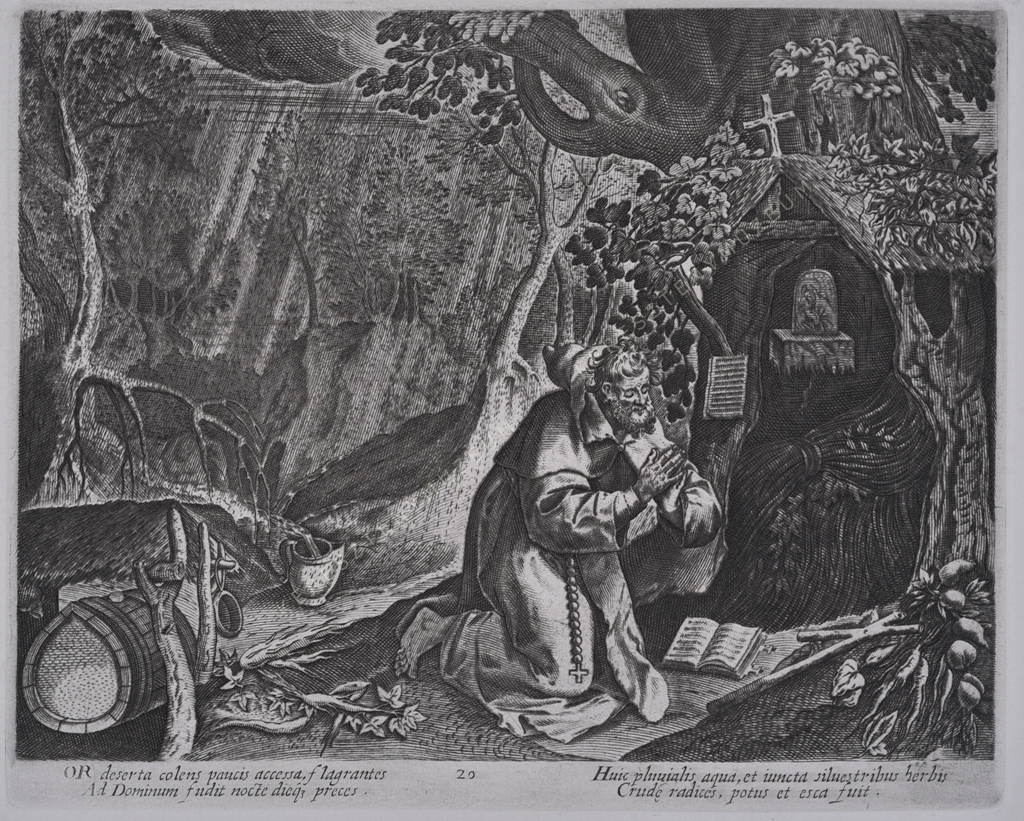 - Hollstein ; Leopoldine van Hogendorp Prosperetti: ""Helenus and Dorotheus: Marten de Vos and the Desert Fathers,"" in: Walter Melion, James Clifton, Michel Weemans (szerk.): Imago Exegetica: Visual Images as Exegetical Instruments, 1400-1700. Leiden: Brill, 2014, 423-448. Domenico de Rossi: Indice delle stampe, intagliate in rame a bulino, e in acqua forte esistenti nella stamperia di Domenico de' Rossi erede di Gio. Giacomo appresso Santa Maria della Pace in Roma. […] 1714, 80. o: Libro de' Santi Eremiti, intitolato Solitudo, sive Vitae Patrum Eremicolarum in 30 fogli mezzi reali intagliato a bulino. Giovanni Giacomo de' Rossiról és a Rossi család kiadói vállalkozásáról: Massimo Ceresa: ""De Rossi, Giovanni Giacomo"", in Dizionario Biografico degli Italiani, 39 (1991).