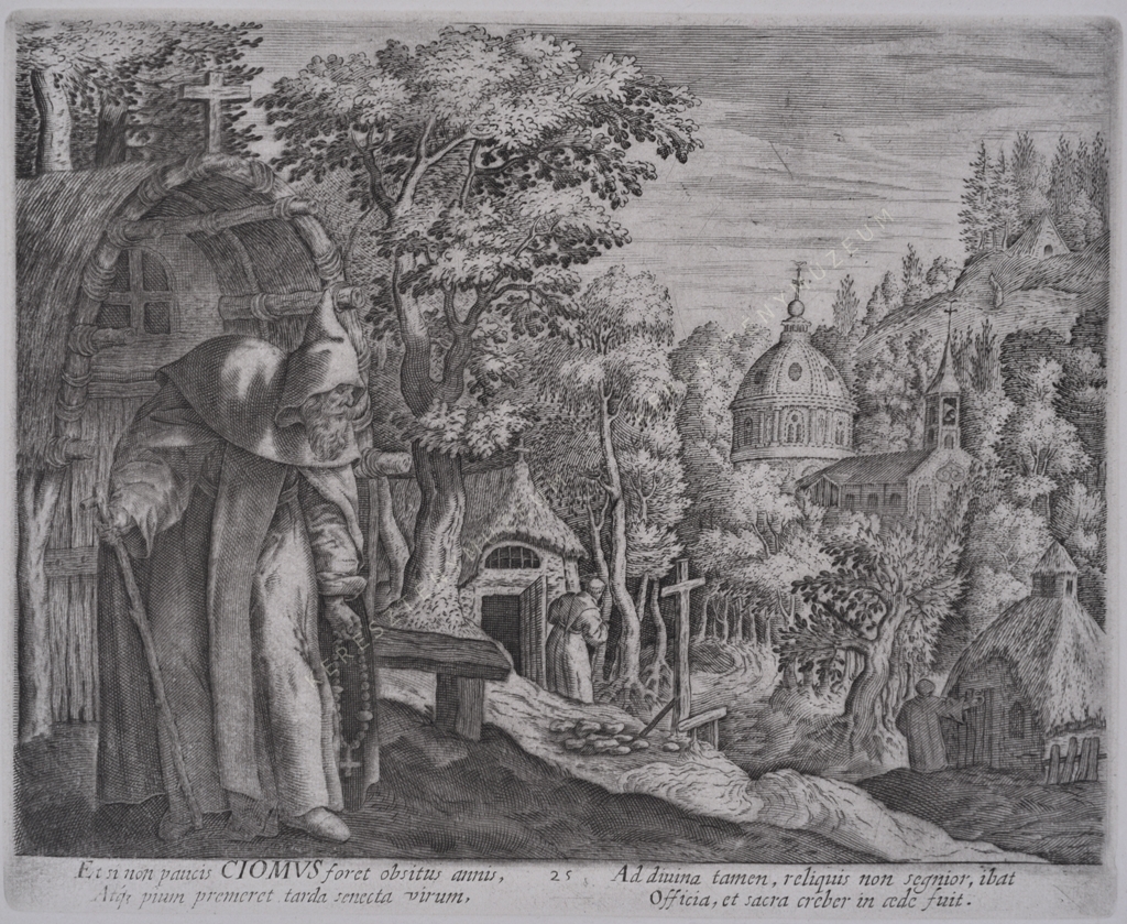 - Hollstein ; Leopoldine van Hogendorp Prosperetti: ""Helenus and Dorotheus: Marten de Vos and the Desert Fathers,"" in: Walter Melion, James Clifton, Michel Weemans (szerk.): Imago Exegetica: Visual Images as Exegetical Instruments, 1400-1700. Leiden: Brill, 2014, 423-448. Domenico de Rossi: Indice delle stampe, intagliate in rame a bulino, e in acqua forte esistenti nella stamperia di Domenico de' Rossi erede di Gio. Giacomo appresso Santa Maria della Pace in Roma. […] 1714, 80. o: Libro de' Santi Eremiti, intitolato Solitudo, sive Vitae Patrum Eremicolarum in 30 fogli mezzi reali intagliato a bulino. Giovanni Giacomo de' Rossiról és a Rossi család kiadói vállalkozásáról: Massimo Ceresa: ""De Rossi, Giovanni Giacomo"", in Dizionario Biografico degli Italiani, 39 (1991).