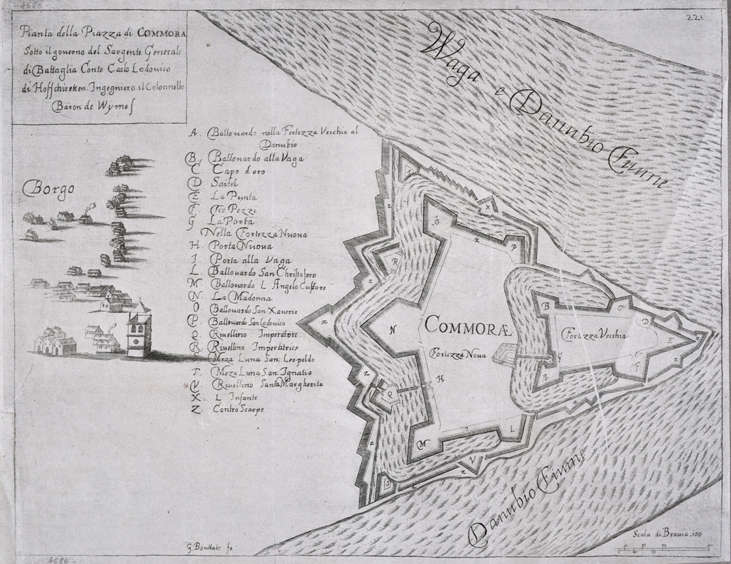 Pianta della Piazza di COMMORA Sotto il gouerno del Sargente Generale di Battaglia Conte Carlo Lodouico di Hoffchireken Ingegniero il Colonnello Baron di Wymes