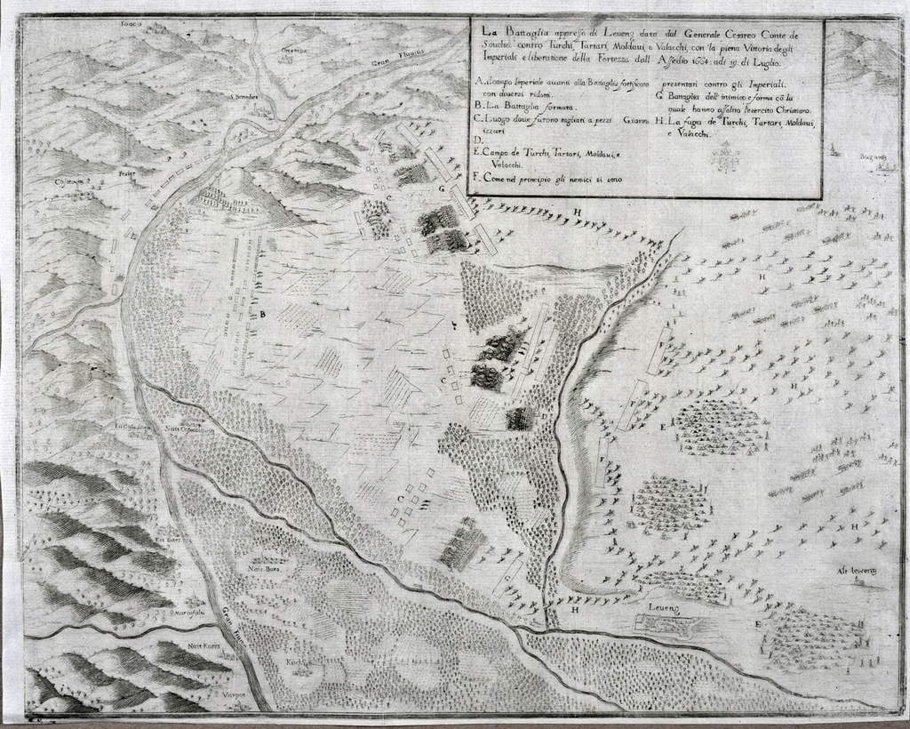 La Battaglia appresso di Leuen data dal Generale Cesareo Conte di Souches contro Turchi, Tartari, Moldaui, e Valacchi, con la piena Vittoria degli Imperiali e liberatione della Fortezza dall Assedio 1664: adi 19 di Luglio.