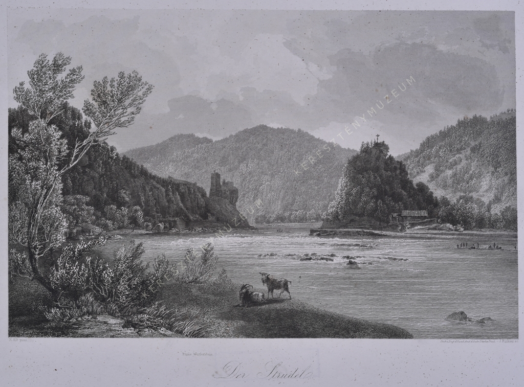 Cím: Der Strudel Egyéb felirat: Stich u. Druck d. Kunst Anst. D. Oestr. Lloyd in Triest; kisebb betűkkel a cím fölött, az ábrázolt hely alatt: Ruine Werfenstein