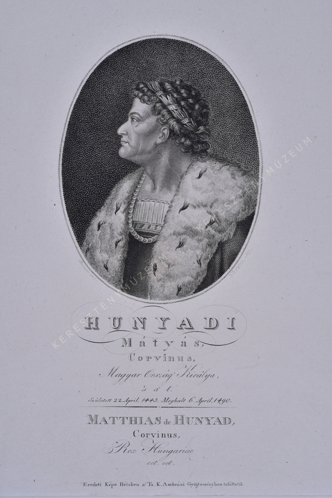 Corvinus, Magyar Ország' Királya, 's a' t. Született 22. april 1443. Meghalt 6. April 1490. / MATTHIAS de HUNYAD, Corvinus, Rex Hungariae cet.cet.