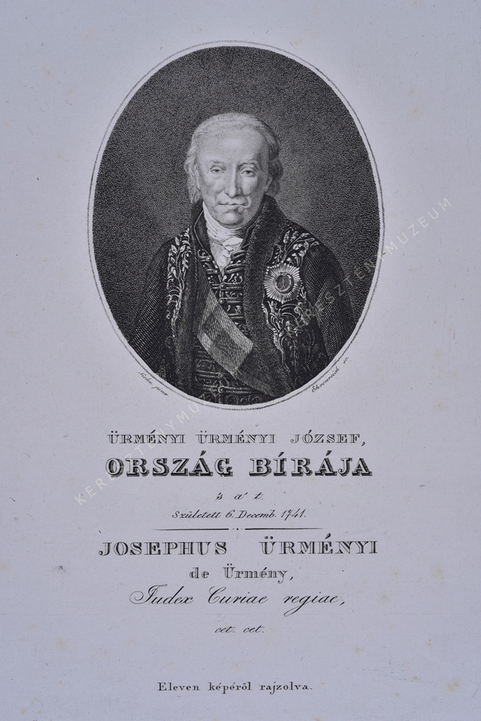 ORSZÁG BÍRÁJA 's a' t. Született 6. Decemb. 1741. / JOSEPHUS ÜRMÉNYI de Ürmény, Iudex Curiae Regiae, cet.cet.