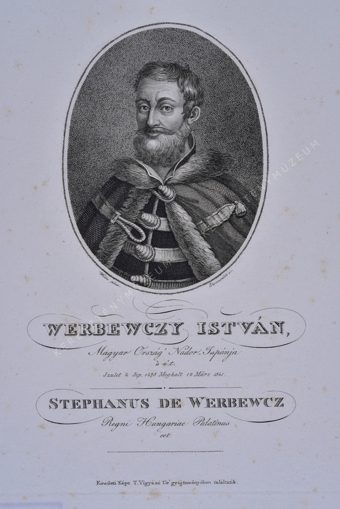 Magyar Ország' Nádor_Ispánja, 's a. t. Szulet. 4 Sep. 1475. Meghalt 12. März. 1541. / STEPHANUS DE WERBEWCZ Regni Hungariae Palatinus cet.