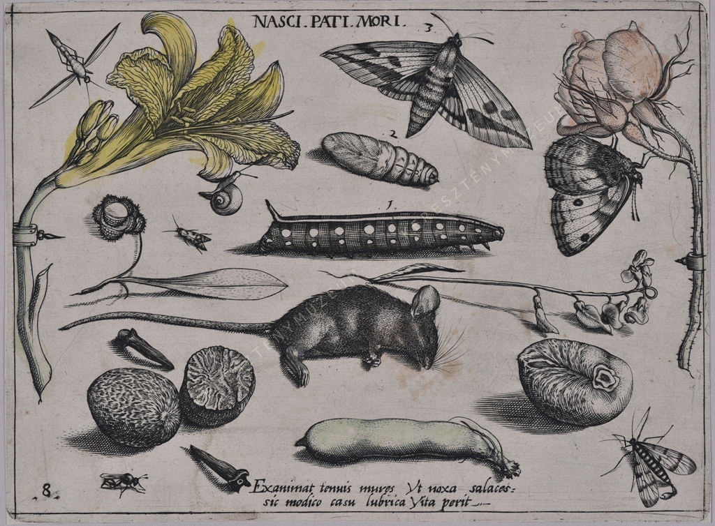 NASCI. PATI. MORI. A hernyó, báb illetve lekpe fölött számozás: 1, 2, 3