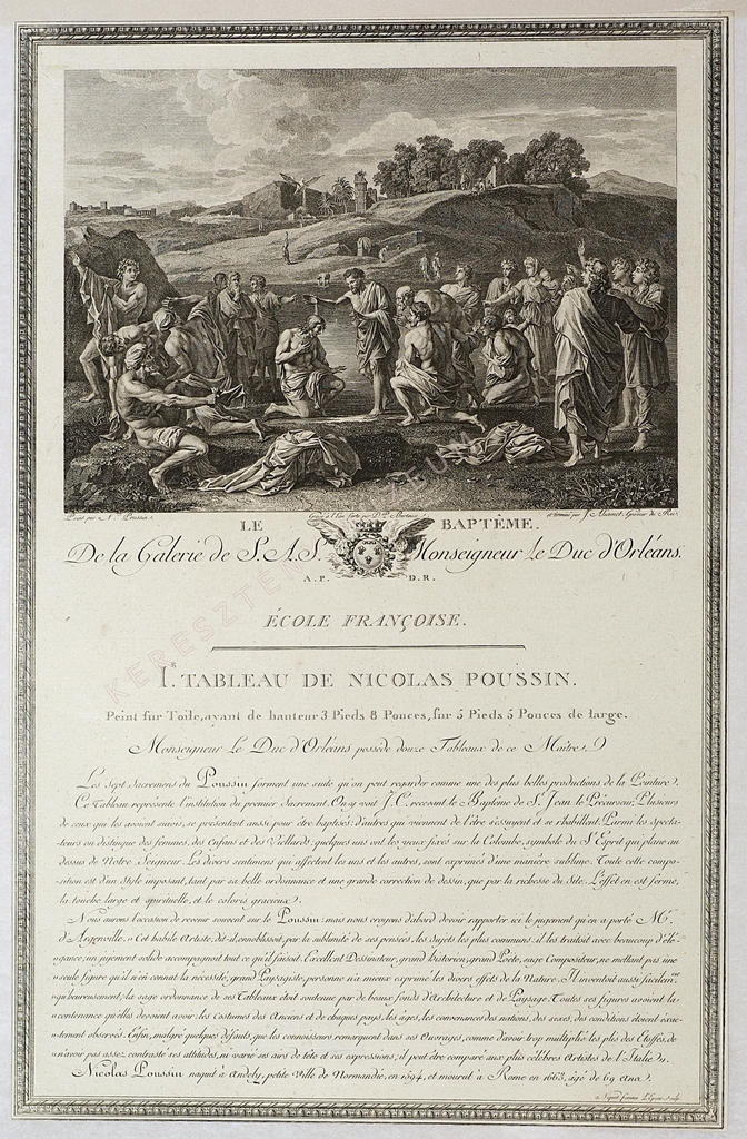 De la Galerie de S. A. S. Monseigneur le Duc d'Orléans. A. P. D. R. École françoise. Ier Tableau de Nicolas Poussin. Peint sur Toile, ayant le hauteur 3 Pieds 8 Pouces, sur 5 Pieds 5 Pouces de large. […]