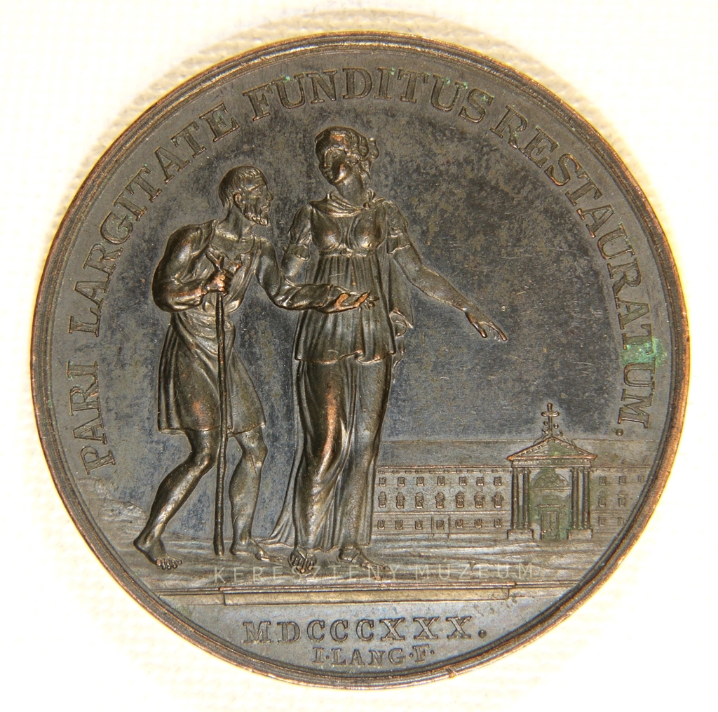 Körirat: EXIMIA CIVIUM PIETATE FUNDATUM szelvényben: PISONII SAEC. XIV | Körirat: PARI LARGITATE FUNDITUS RESTAURATUM. szelvényben: MDCCCXXX.