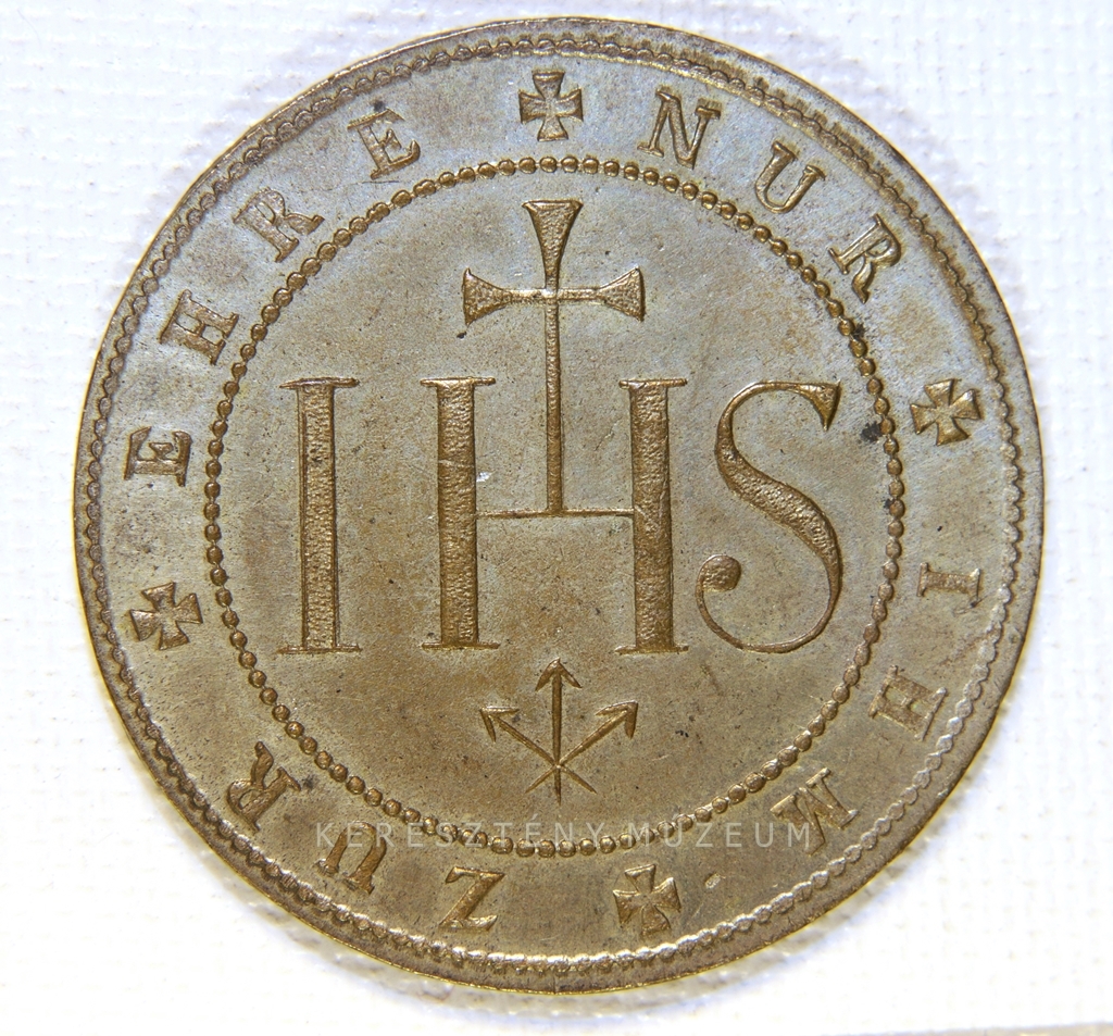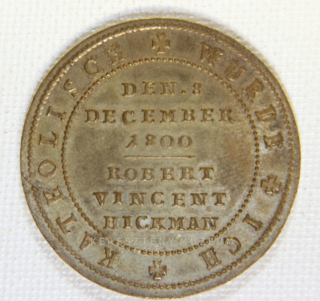 » Emlékérem katolikus hitre való áttérés alkalmából. Materialbrass Techniquesilver gilt Sizesátmérő: 37,0 mmvastagság: 2,2 mm Inscription+NUR +IHM+ZUR+EHRE | +WURDE+ICH+KATHOLISCH DEN.8. / DECEMBER / 1800 / ROBERT VINCENT HICKMANN Inventory No.2020.5.1.N Download PDF Description and further information More ⮜ PreviousNext ⮞