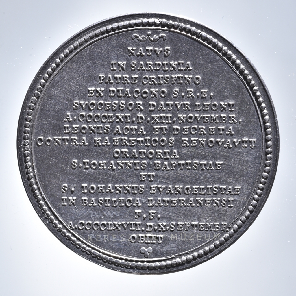 S*HILARVS I*PONT*MAX* | NATVS IN SARDINIA PATRE CRISPINO EX DIACONO S.R.E. SVCESSOR DATVR LEONI A.CCCCLXII.D.NOVEMBR LEONIS ACTA ET DECRETA CONTRA HAERETICOS RENOVAVIT ORATORIA S.IOHANNIS BAPTISTAE ET S. IOHANNIS EVANGELISTAE IN BASILICA LATERANANSI F.F. A.CCCCLXVII.D.X.SEMTEMBR OBIIT*"
