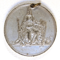 » Prágai jubileumi országos kiállítás 1891 ArtistThein, Fritsche Origin date1891 Sizesátmérő: 30,7 mmvastagság: 2,3 mm SignatureFRITSCHE THEIN Inscription ZEMSKA JUBILEJNI VYSTAVA V PRAZE 1891 Inventory No.2020.25.1.N Download PDF Description and further information Hátlap: Bohemia ülő nőalakja tartja a cseh oroszlános címerpajzsot More ⮜ PreviousNext ⮞