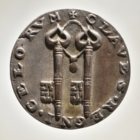 » II. István pápa Techniquesilver gilt Sizesátmérő: 38,14 mmvastagság: 4,8 mm Inscription*STEPHANYS*II*PONT*MAX* | CLAVES*REGNI*CELORVM+ Inventory No.64.195 Download PDF Description and further information More ⮜ PreviousNext ⮞