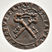 » I. Adorján pápa Materialbronze Techniqueöntött Sizesátmérő: 41,3 mmvastagság: 3,9 mm Inscription HADRIANVS*I*PONT*MAX. | SANCTVS : PETRVS : ET : PAVLVS* + Inventory No.64.204 Download PDF Description and further information More ⮜ PreviousNext ⮞