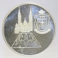 Hátlap: a szegedi székesegyház épületének képe; jobbra Gyulay Endre püspöki címere, jelmondattal: SURREXIT... NOLITE TIMERE