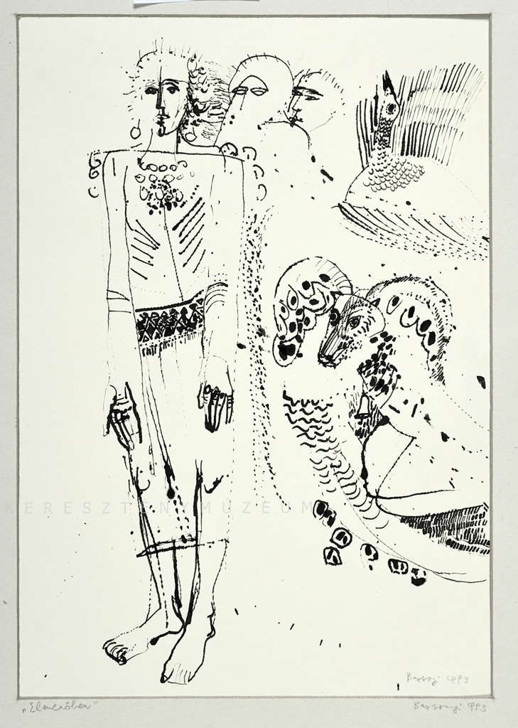 Mögötte arcok, egy madár és egy kos (?), nyakában haranggal.