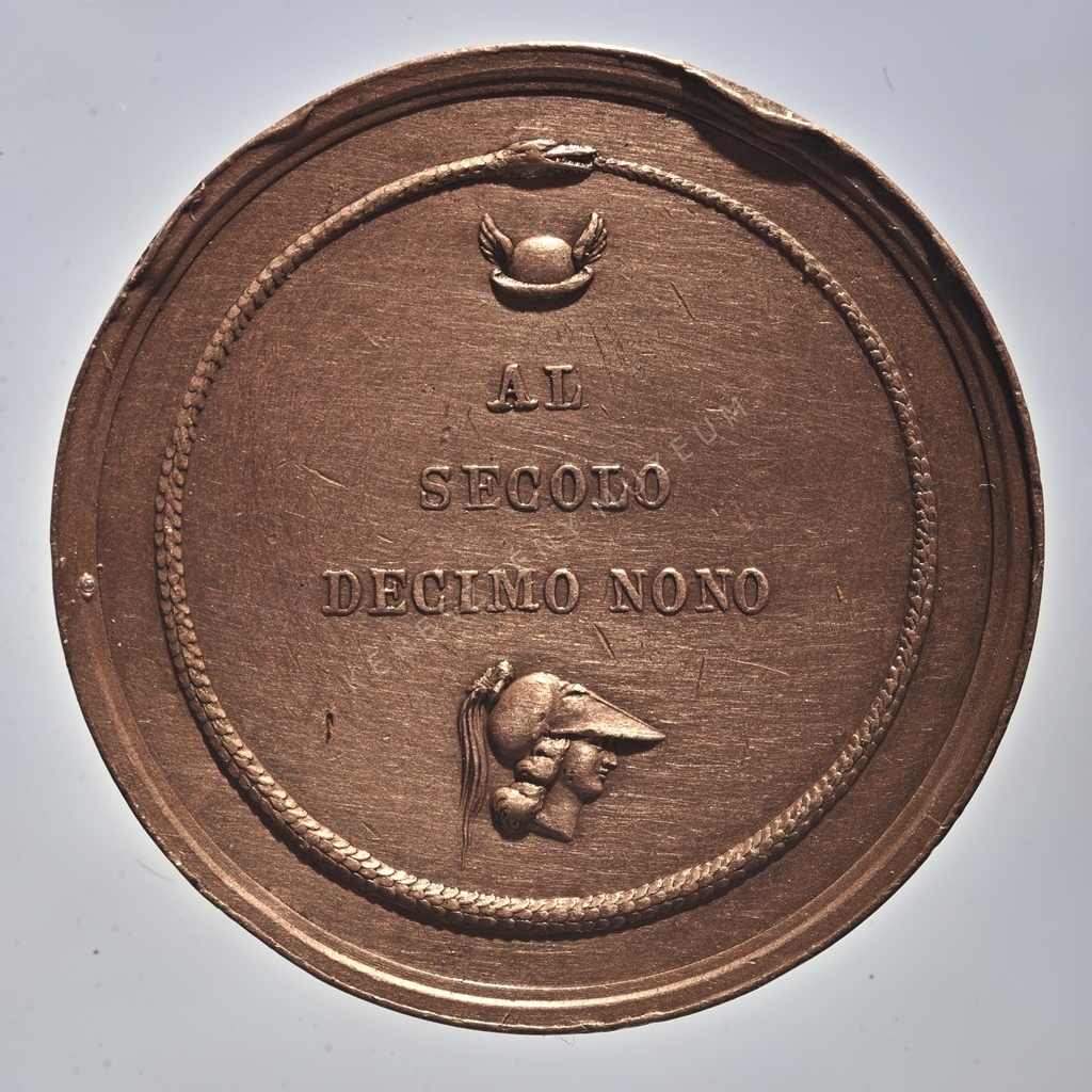 Hátlap: Saját farkába harapó kígyó által képzett gyűrűben felirat