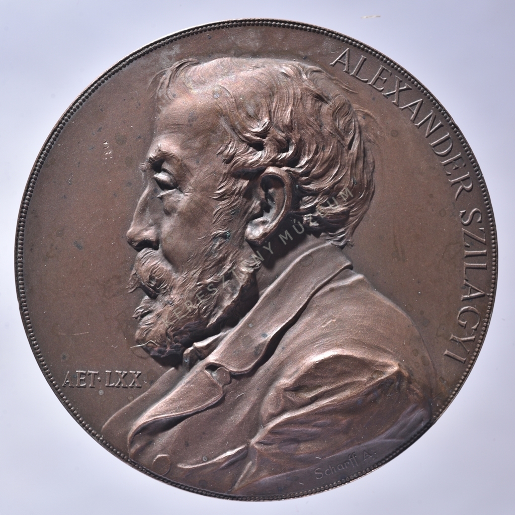 AET*LXX ALEXANDER SZILÁGYI | levélsor alatt: REVUM*HVNGARICARVM*AC*TRANSSYLVANICARVM*INDAGATORI*INDEFESSO*1897