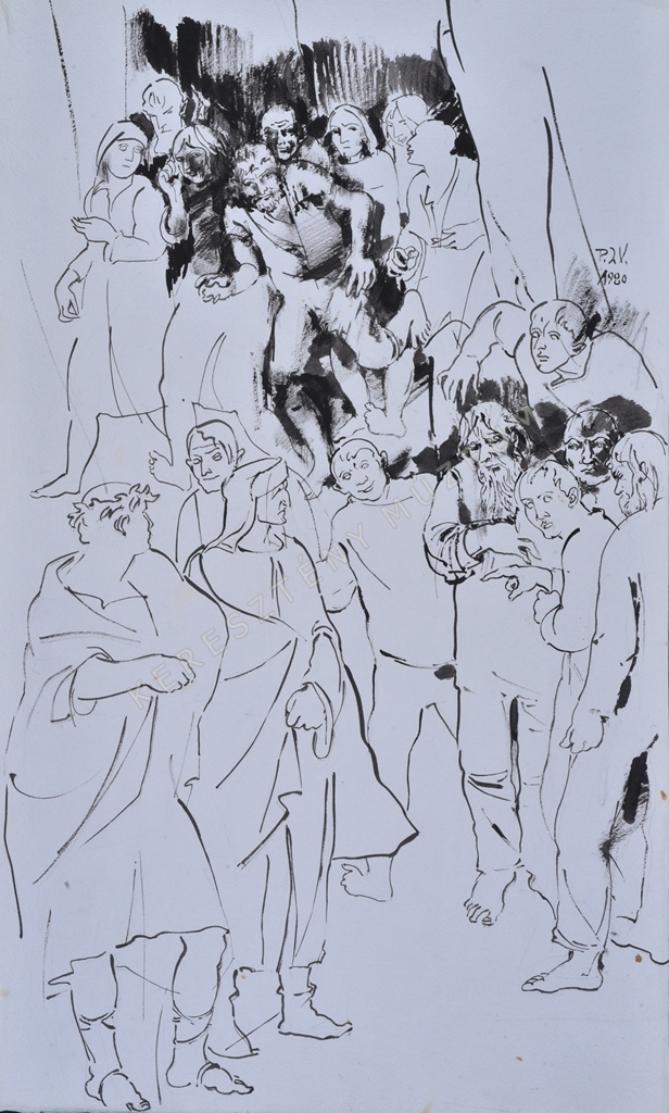 Álló kompozíció: az előtér baloldalán Vergilius áll Dantéval, a jobboldalt állók felé fordulnak. Fent árnyak közeledő csoportja.