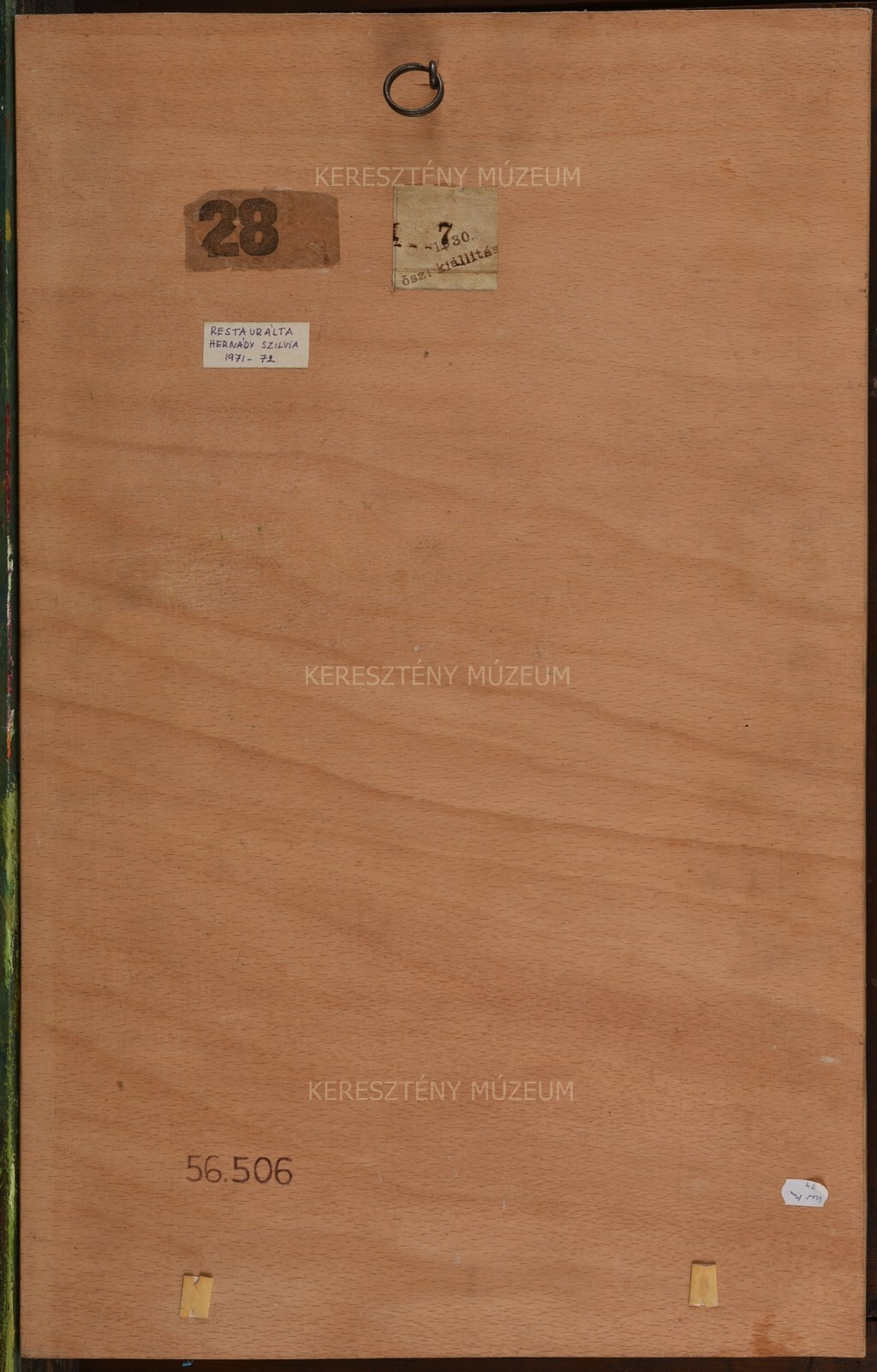 The four panels depicting female saints (56.503, 56.504, 56.505, 56.506) originally belonged to left movable wing of the same winged altarpiece. The painted slats between the pictures and the arrangement of the figures indicate that the images of St Margaret and St. Catherine occupied the upper register of the feast-day side and St. Agnes and St. Dorothy the lower. The separation of the altarpiece wing into four individual panel paintings probably occurred in the 19th century, as this is how the works were listed in the estate inventory of the Ipolyi collection. A significant portion of the upper part of the gold background on the former inner side is overpainted and only two-thirds of the punched frame ornamentation has survived. Perhaps a tracery appliqué decoration appeared above the figures. The figural composition bears conspicuous similarities to that of panel paintings dated to c. 1420 (more recently c. 1430) from the castle of Ober-St-Veit and now in the Dom und Diözesanmuseum in Vienna (Prot. Nr. L. 28-34); the Esztergom pictures, however, may be of a later date.