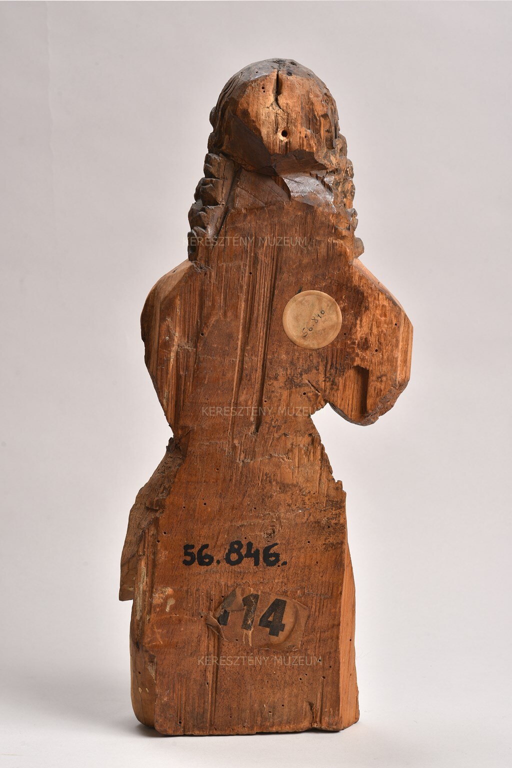 Ipolyi Collection. ‘193. Low relief wooden statue of John the Evangelist. Cut off at the knees. Domestic (Hungarian). No. XV.’ (Lakatos-Balla 290).
