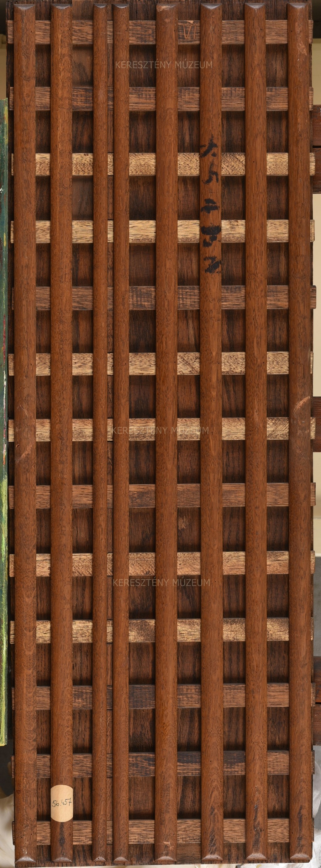 Their vertical edges were probably trimmed. The banderol in the scene with St. Peter contains a text based on lines from Mt 16:16-19: Filius Dei vivi/ tu es Petrus. The beginning of the inscription (‘Tu es Christus’) was probably lost when the panel was trimmed.