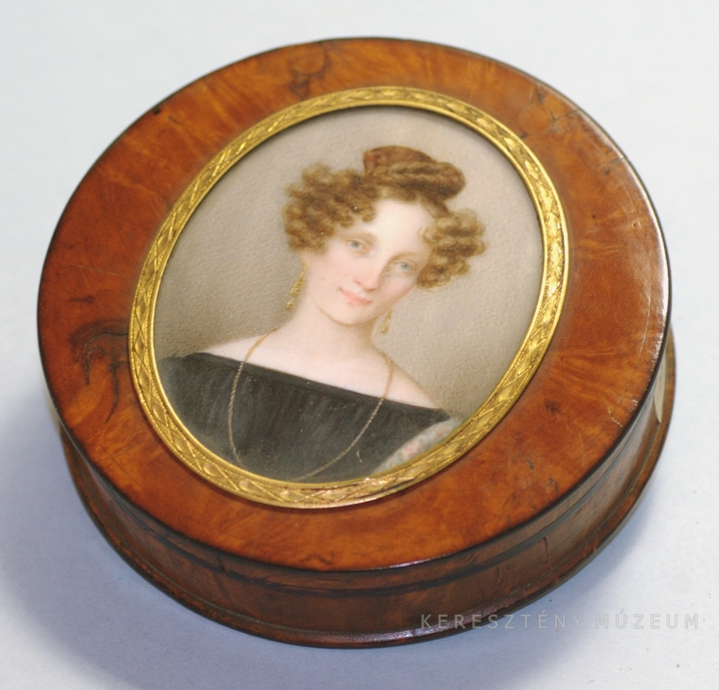 » Szelence Origin datearound 1830 Materialboxwood root, brass Techniqueturned, engraved Sizesmagasság: 2,8 cmátmérő: 9,0 cm Inventory No.55.778.1-2 Download PDF Description and further information Fedelén ovális, vésett, réz keretben fiatal nő festett miniatúrája ProvenanceSan Marco gyűjtemény 581 More ⮜ PreviousNext ⮞
