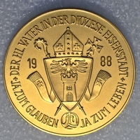 » Szent II. János Pál ArtistBodlak, KurtBécs, 1924 - Kirchberg am Wechsel, 2017 Origin date1988 Materialmetal alloy Techniquearanyozott Sizesátmérő: 70 mmvastagság: 6,3 mm Signatureelőlapon: BODLAK; peremen: MÜNZE WIEN Inventory No.98.93 Download PDF ⮜ PreviousNext ⮞