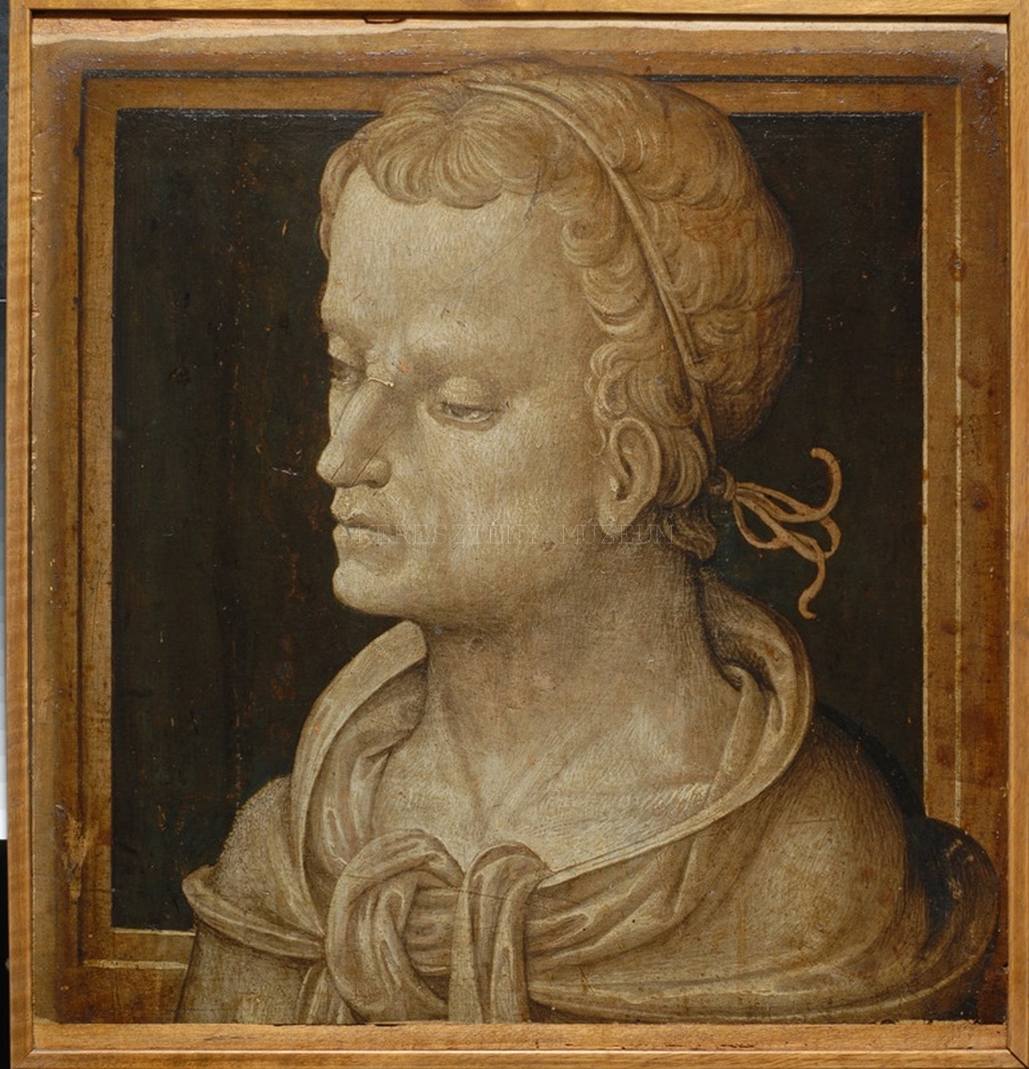 Amico Aspertini 1496-ban, Rómában nagyszámú rajzot készített ókori szobrokról és domborművekről. Archeológiai érdeklődéséhez bőven kapott tápot szülővárosában, az egyeteméről híres Bolognában, amelynek szellemi elitje szenvedélyesen gyűjtötte a történelmi és irodalmi asszociációkat ébresztő művészeti emlékeket. A heroizált múltnak hódol ez az 1503-1504 körül készült, domborművet imitáló, monokróm festmény is, amely talán egy akkoriban divatos Híres emberek (Uomini famosi) sorozathoz tartozott. A humanista témát a bizarr fantáziájú művész korántsem klasszikus harmóniával jeleníti meg. A magas homlokú, mélabús férfi arca szabálytalan, a göndörödő hajfürtök, a nyakszirtnél lebbenő szalag és a tóga kalligrafikus drapériája nyugtalanságot sugallnak. Elsőre tán észre sem vesszük, hogy a mellkép nem a faragott kőkeretben, hanem előtte jelenik meg, pedig az ábrázolás szuggesztív hatásában nagy része van ennek a leleménynek. A festmény-dombormű, szellemidéző ördöngösséggel, életre kel. (Tátrai Vilmos, 2015)