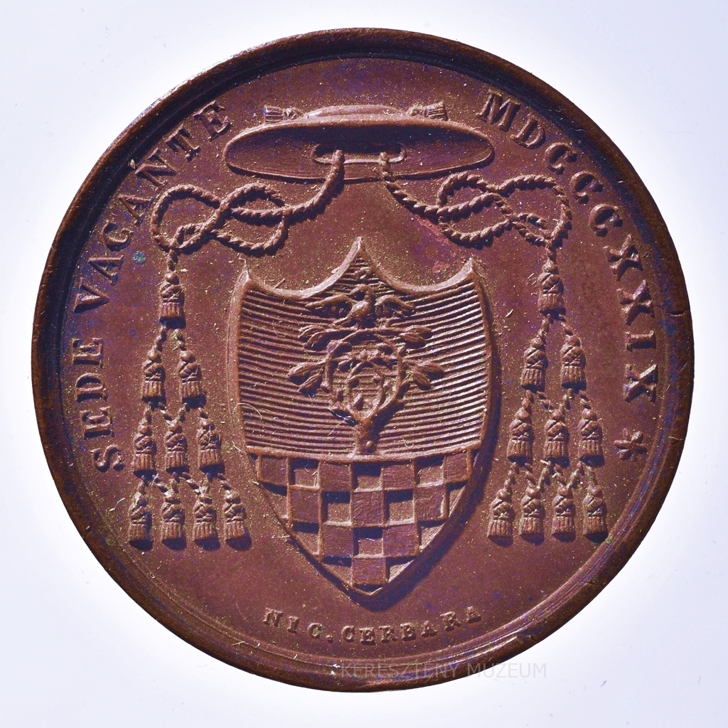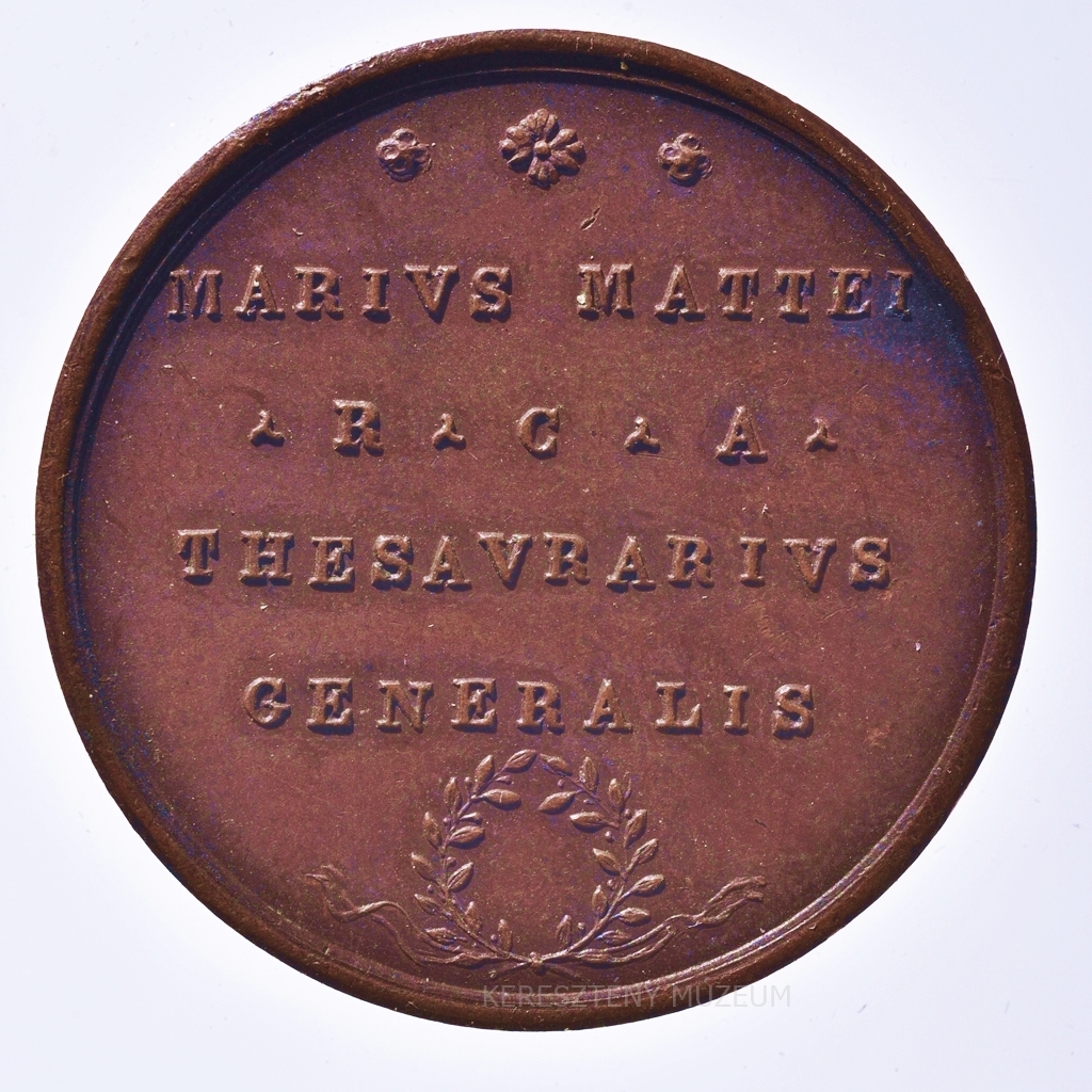 » Sede Vacante érem ArtistCerbara, NiccoloRóma, 1796 - Montepulciano, 1869 Origin date1829 Materialbronze Techniquevert Sizesátmérő: 31,2 mmvastagság: 3,3 mm SignatureNIC.CERBARA InscriptionElőlap: SEDE VACANTE MDCCCXXIX | Hátlap: MARIVS MATTEI/R*C*A*/THESAVRARIVS/GENERALIS Inventory No.65.1413 Download PDF ⮜ PreviousNext ⮞