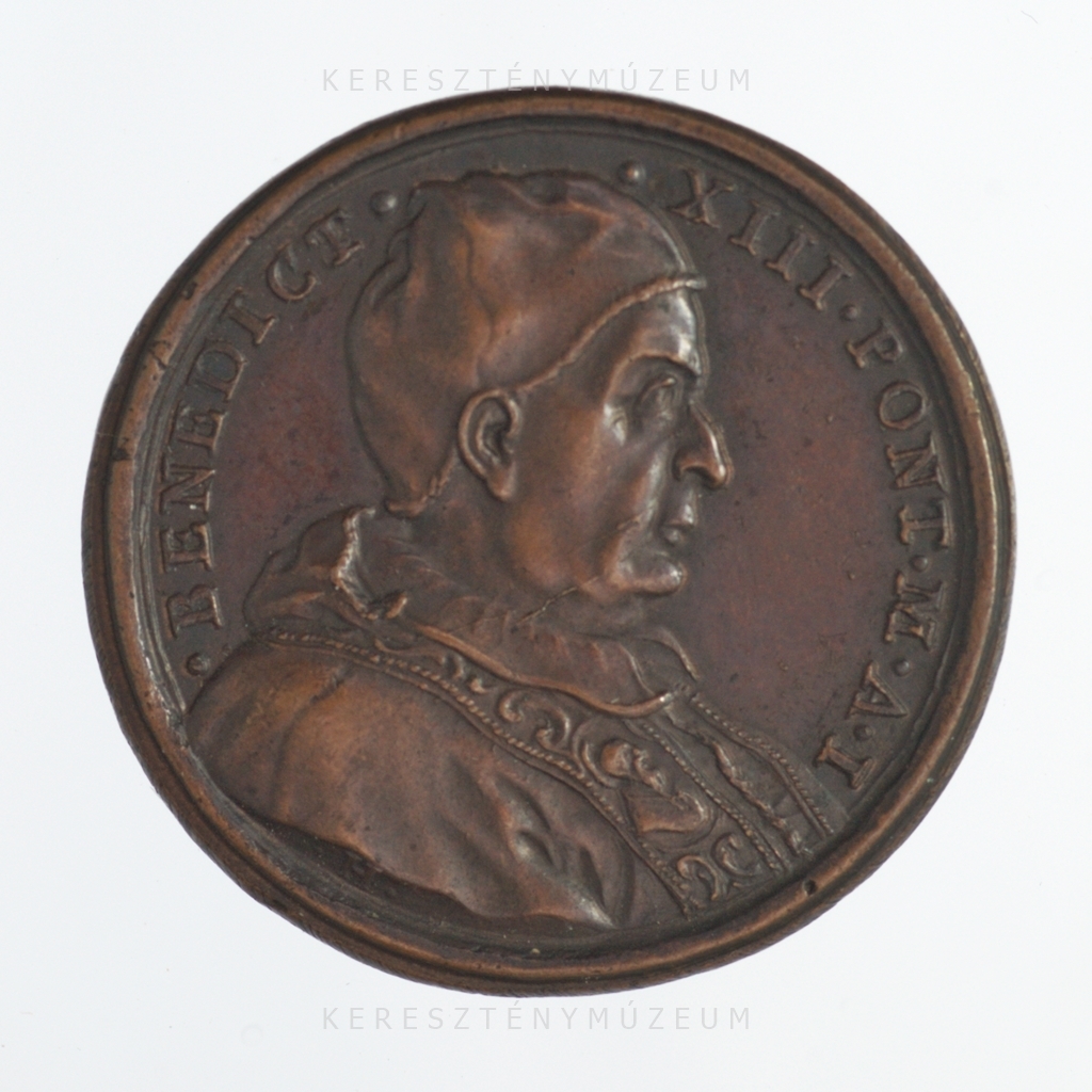 Előlap: •BENEDICT • __ • XIII • PONT • M • A • I | Hátlap: HAVRIETIS • IN • GAVDIO • DE FONTIBVS • SVL|Szelvényben: IVBILAEI • INDICT • | 1724