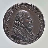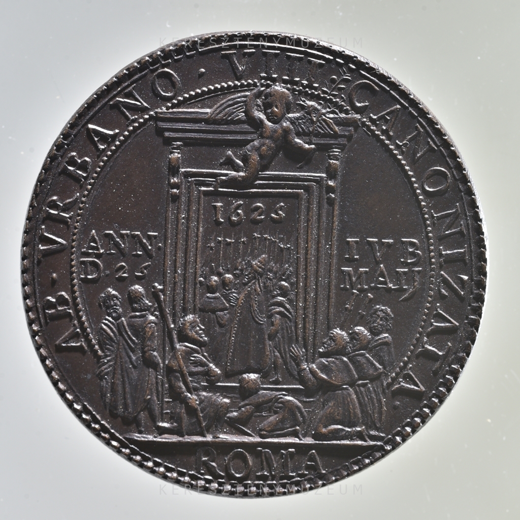 Előlap: VRBANVS • VIII • PONT • MAX • AN • III • | vállperemnél: M • DC • XXVI | Hátlap körirat: AB • VRBANO • VIII • CANONIZATA •| a nyitott kapuban: 1625 | a kapuoszlopok két oldalán: ANN • IVB • D • 25 MAIJ | Szelvényben: ROMA