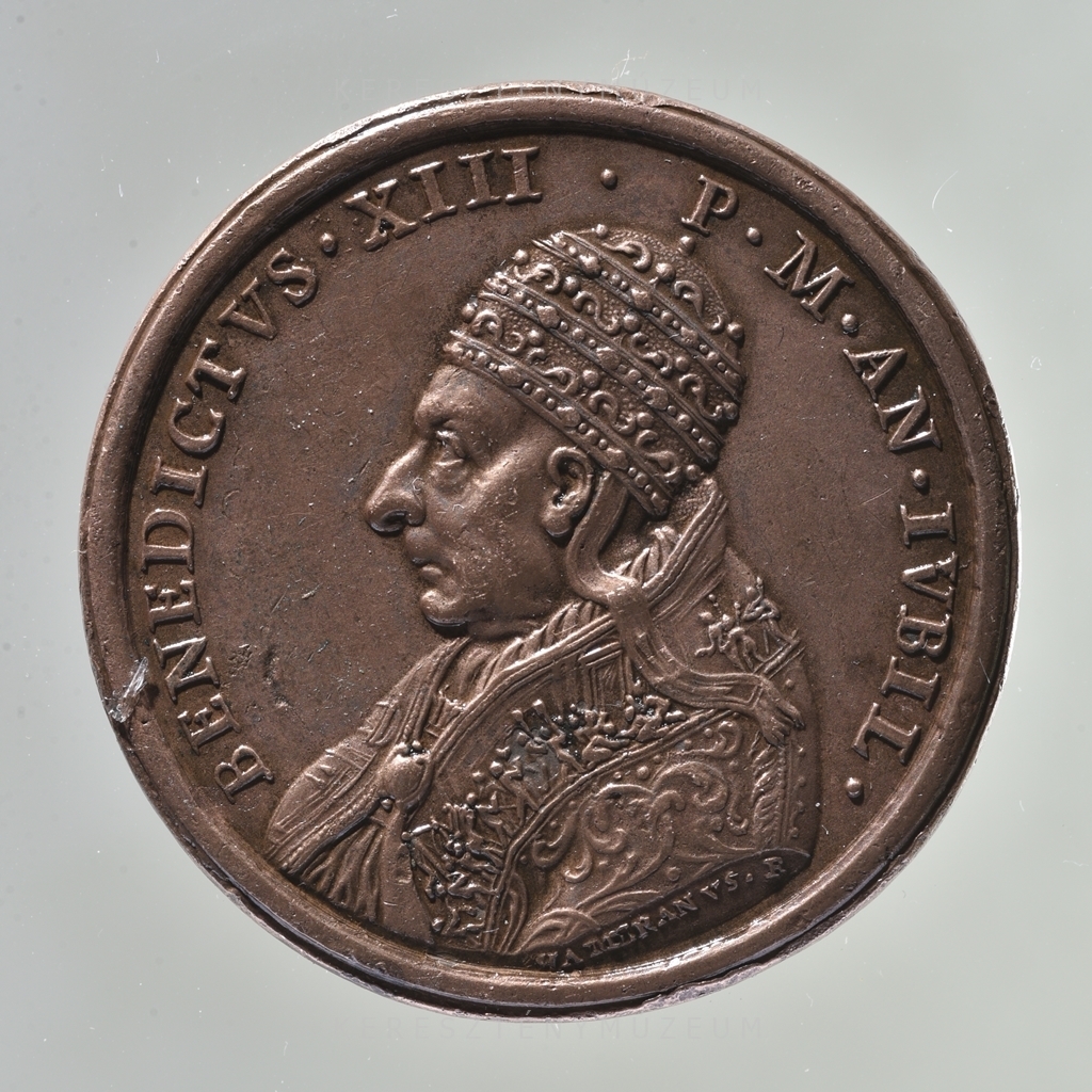 Előlap: BENEDICTVS • XIII • P • M • AN • IVBIL • | Hátlap, mondatszalagon: I • DOMVS•DEI•ET•PORTA•COELI • H| Szelvényben: 1725