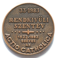 Előlap: • ACTIO • CATHOLICA • * • ORSZÁGOS ELNÖKSÉG •* | Hátlap: 33-1983 | RENDKIVÜLI | SZENTÉV | • • • + • • •|1933-1983| 50 ÉVES| Az| ACTIO CATHOLICA