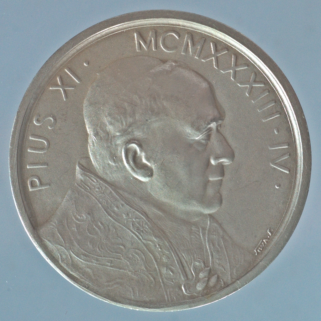 A Stabilimenti Artistici Fiorentini által 1933. 01. 04-én kibocsátott, matt hátterű alkalmi érem a Megváltás rendkívüli jubileumának emlékére. Előlap: a pápa arcképe jobb profilból, vállán palást, fején pileolus. A palást csatján pápai címerének motívumai. Hátlap: fogazott gyűrűben korpusz nélküli, álló kereszt.