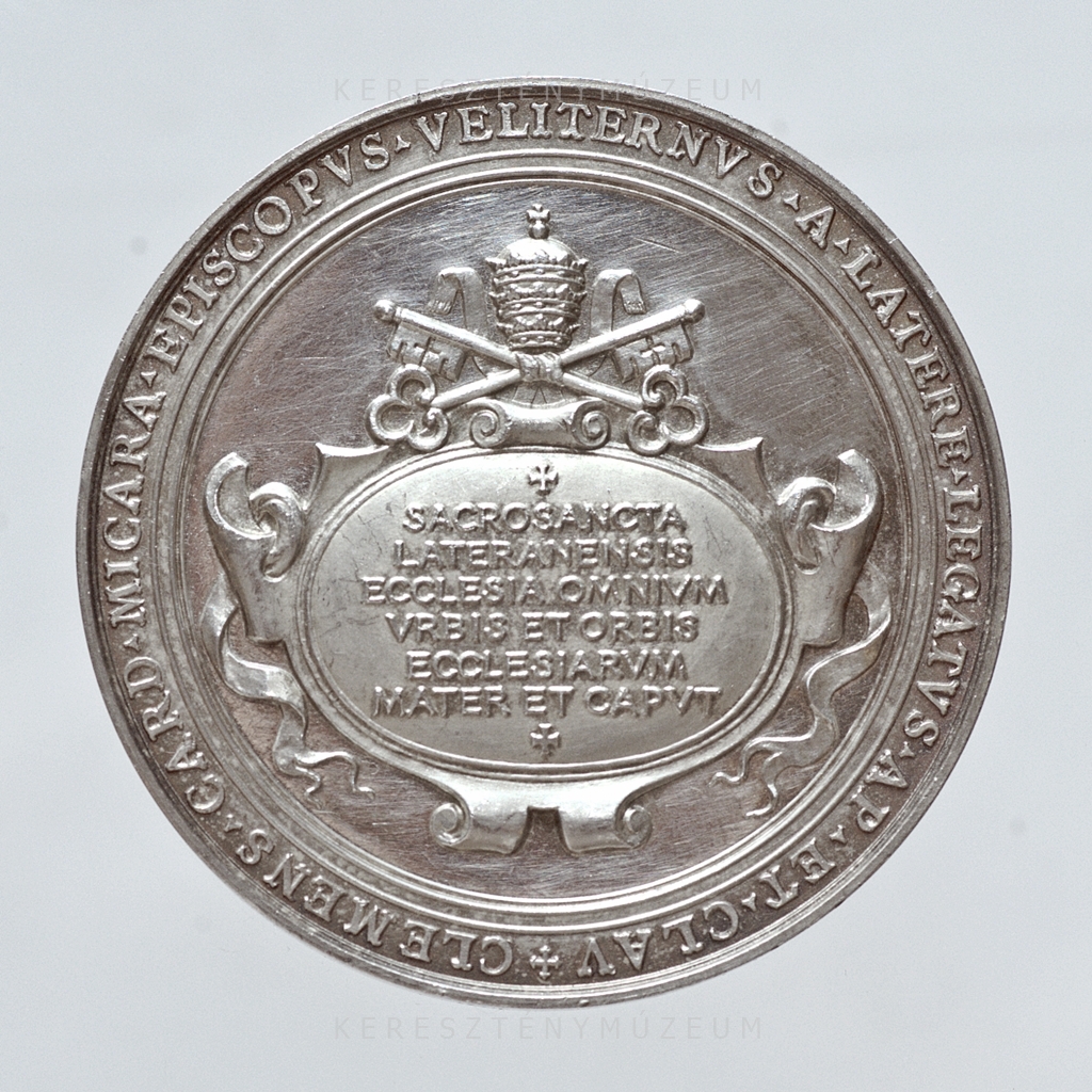 Előlap: SEDENTE PIO XII PONTEFICE MAXIMO • ✠ • | AN. IVB. __ MCML | Hátlap körirat: CLEMENS • CARD • MICARA • EPISCOPVS • VELITERNVS • A • LATERE • LEGATVS • AP • ET • CLAV ✠ | pajzsmezőben: ✠ | SACROSANCTA | LATERANENSIS | ECCLESIA OMNIVM | VRBIS ET ORBIS | ECCLESIARVM | MATER ET CAPVT | ✠