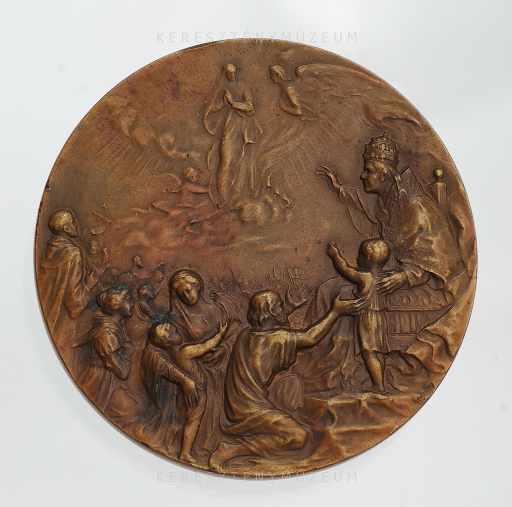 A Szeplőtelen fogantatására vonatkozó hittétel kihirdetésének 50. évfordulójára, a pápa 1904. február 2-án rendkívüli Szentévet hirdetett. Előlap: a pápa arcképe, bal profilból. Vállán mocétum és stóla, fején pileolus. Hátlap: A pápa, az éremmező jobb oldalán, egyházfői díszben (palást és tiara), tanítja a híveket. Előtérben, anyák a gyermekeikkel. A pápa felhőkön, angyalok közt megjelenő, Szűz Máriára mutat fel.