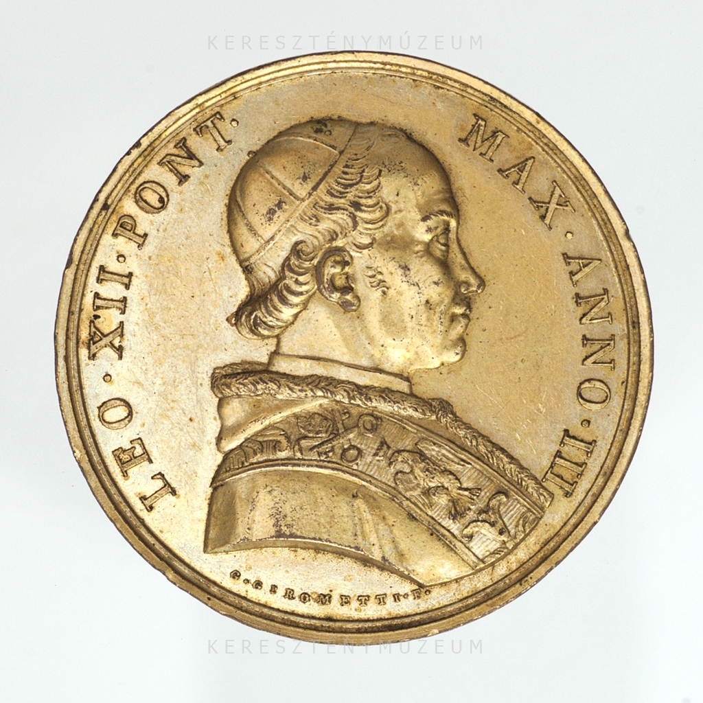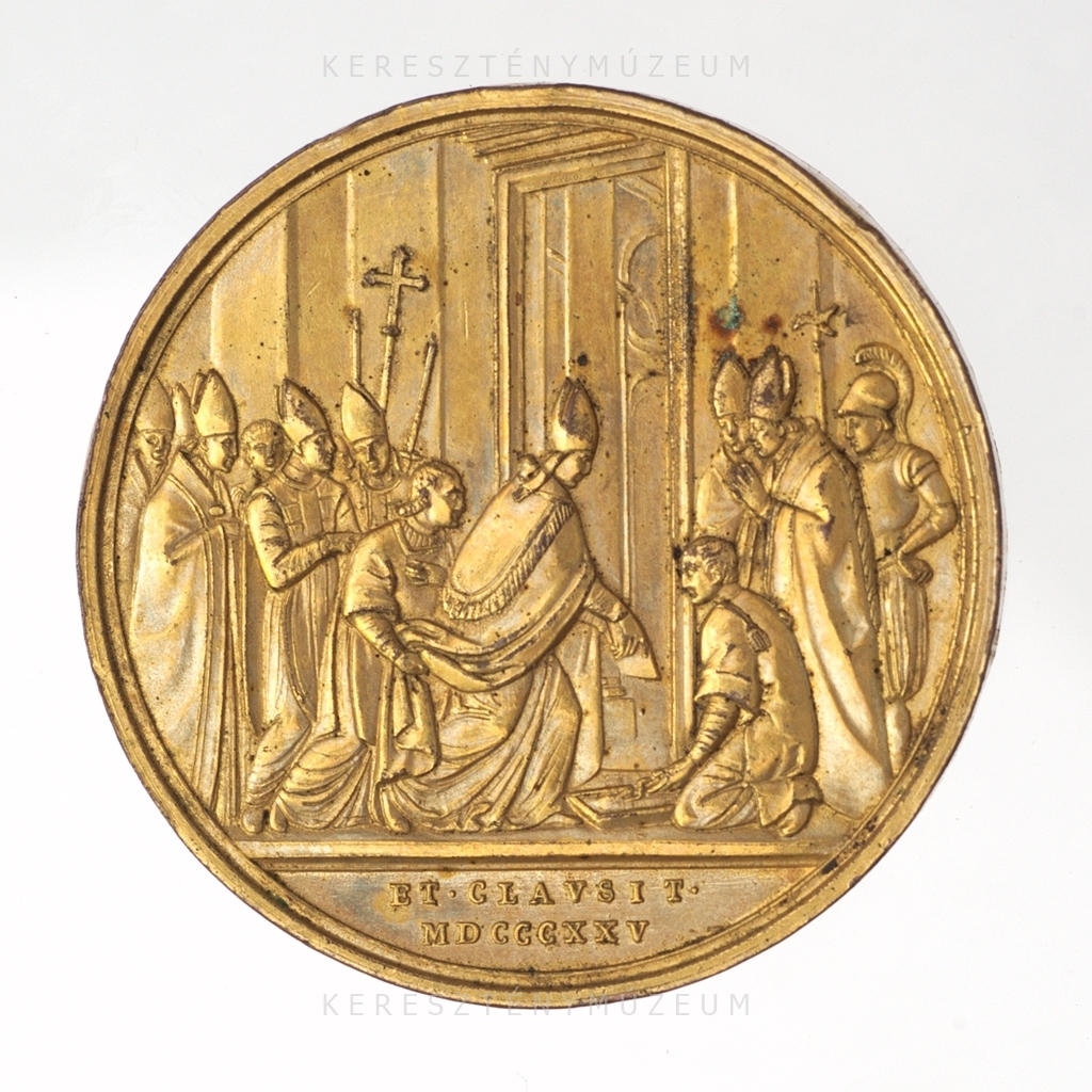 Alkalmi érem, amelyet 1825. december 24-én bocsátottak ki, a vatikáni Szent Kapu bezárásának alkalmából. Előlap: a pápa arcképe jobb profilból. Vállán hermelin-szegélyes mocétum és stóla, fején pileolus. Stólájának hímzésén a pápai jelképek, és a családi címer. Hátlap: a pápa palástban, és infulában, az asszisztencia segítségével elhelyezi a még teljesen nyitott kapuban az első téglát. Az ajtón keresztül látszik a bazilika belső tere.