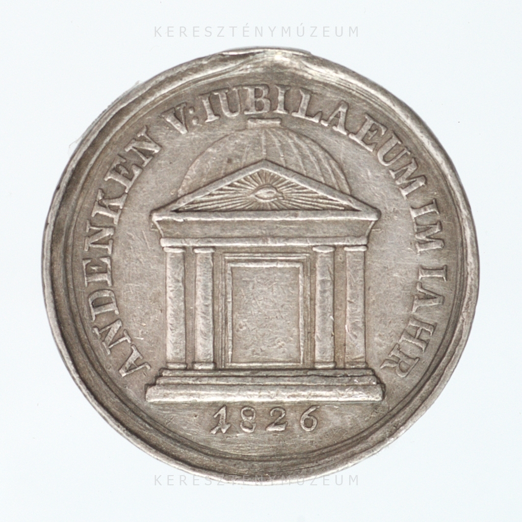 Jubileumi érem, amelyet 1826-ban vertek Ausztriában, a Szentév meghosszabbításának és Ausztriára való kiterjesztésének emlékére. Előlap: a pápa arcképe, bal profilból, áldó kéztartással. Vállán palást, fején tiara. Hátlap: kupolás oszlopcsarnokos, timpanonos templom nyitott bejárata. A felirat német nyelű: "Az 1826-os jubileumi év emlékére"