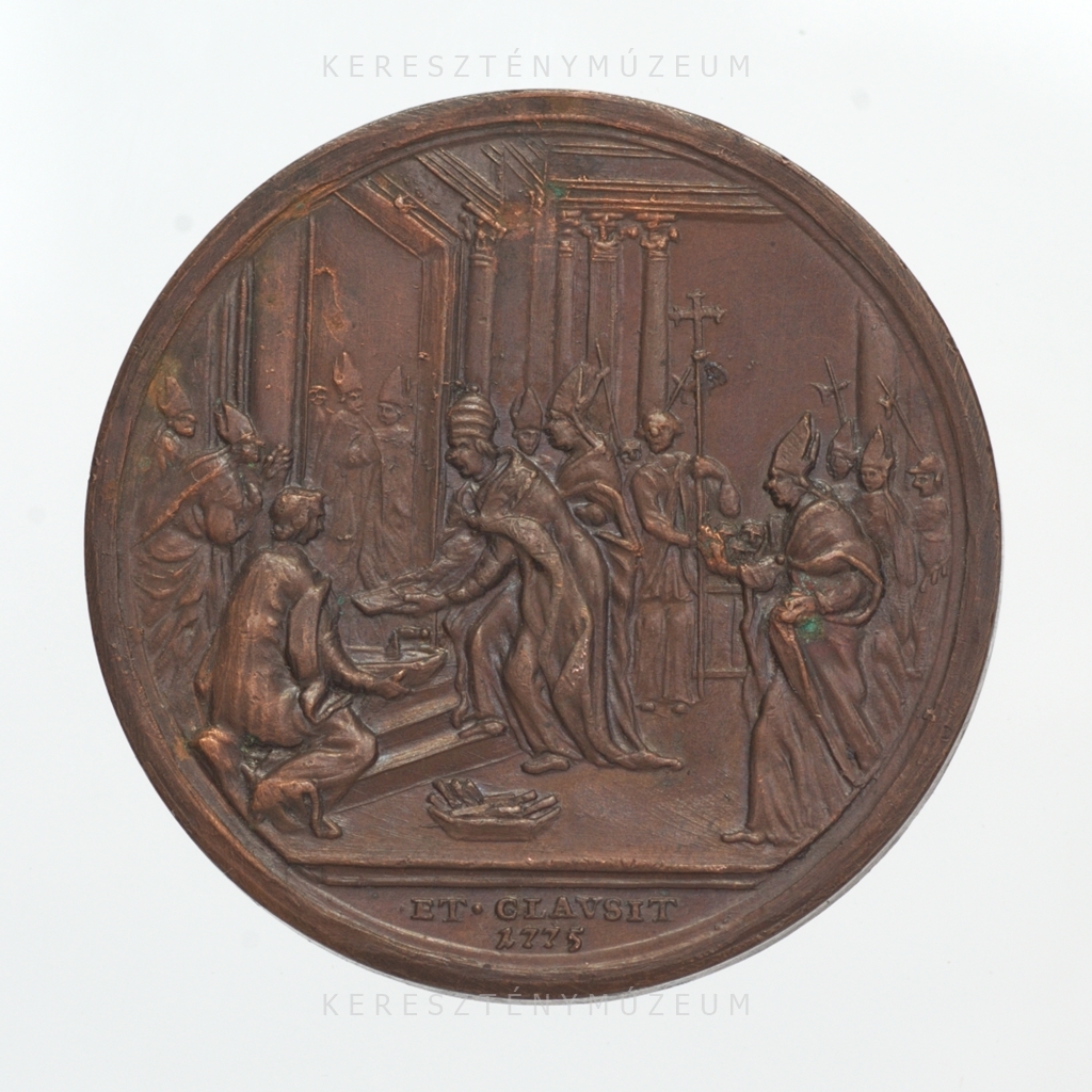 A vatikáni bazilika Szent Kapujának bezárására kiállított rendkívüli érem. Előlap: a pápa arcképe jobb profilból. Vállán mocétum és stóla, fején pileolus. Hátlap: a pápa palástban, fején tiarával, helyezi el a Szent Kapu záró tégláit. A padlón, kosárban a többi tégla, asszisztens szerzetes habarcsos tálat tart előtte. A még nyitott kapu túloldalán a püspöki kar. Háttérben az alabárdos testőrség .