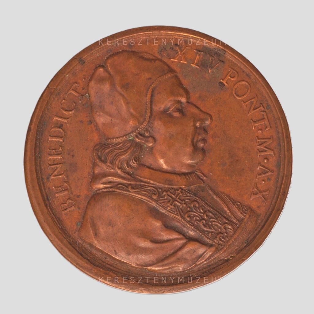 1750-ben készült, alkalmi érem, amelyet a Szentév megnyitásának emlékére adtak ki. Előlap: a pápa arcképe jobb profilból, vállán mocétum és stóla, fején camauro. Hátlap: a befalazott Szent Kapun sugaras latin kereszt, előtte a pápa, vállán palást, fején tiara, kezében kalapács, oldalt a püspöki asszisztencia. Balról térdelő diakónus, kezében nyitott szertartás-könyvet tart. Fentről sugaras fénycsóva vetül a kapura.