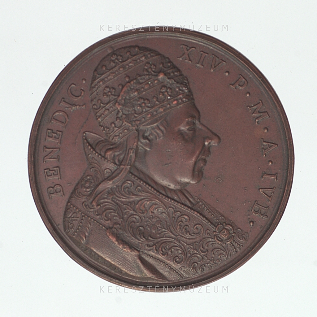 Előlap: BENEDIC • XIV • P • M • A • IVB • | Hátlap: INTROITE • PORTAS • EIVS