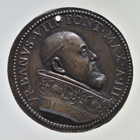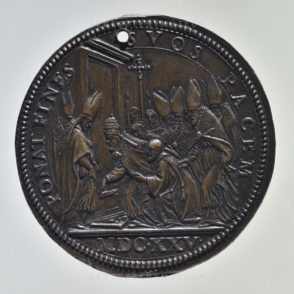 1626. június 29-én kibocsátott érem, a Szentév zárásának emlékére. Előlap: a pápa arcképe, jobb profilból, gyöngysoros gyűrűben. Vállán palást, a széles szegélyen Szent Pál és Szent Péter apostolok láthatók. Hátlap: a pápa palástban, fején tiarával, elhelyezi a Szent Kapu zárótégláit. Körülötte a a kísérete.