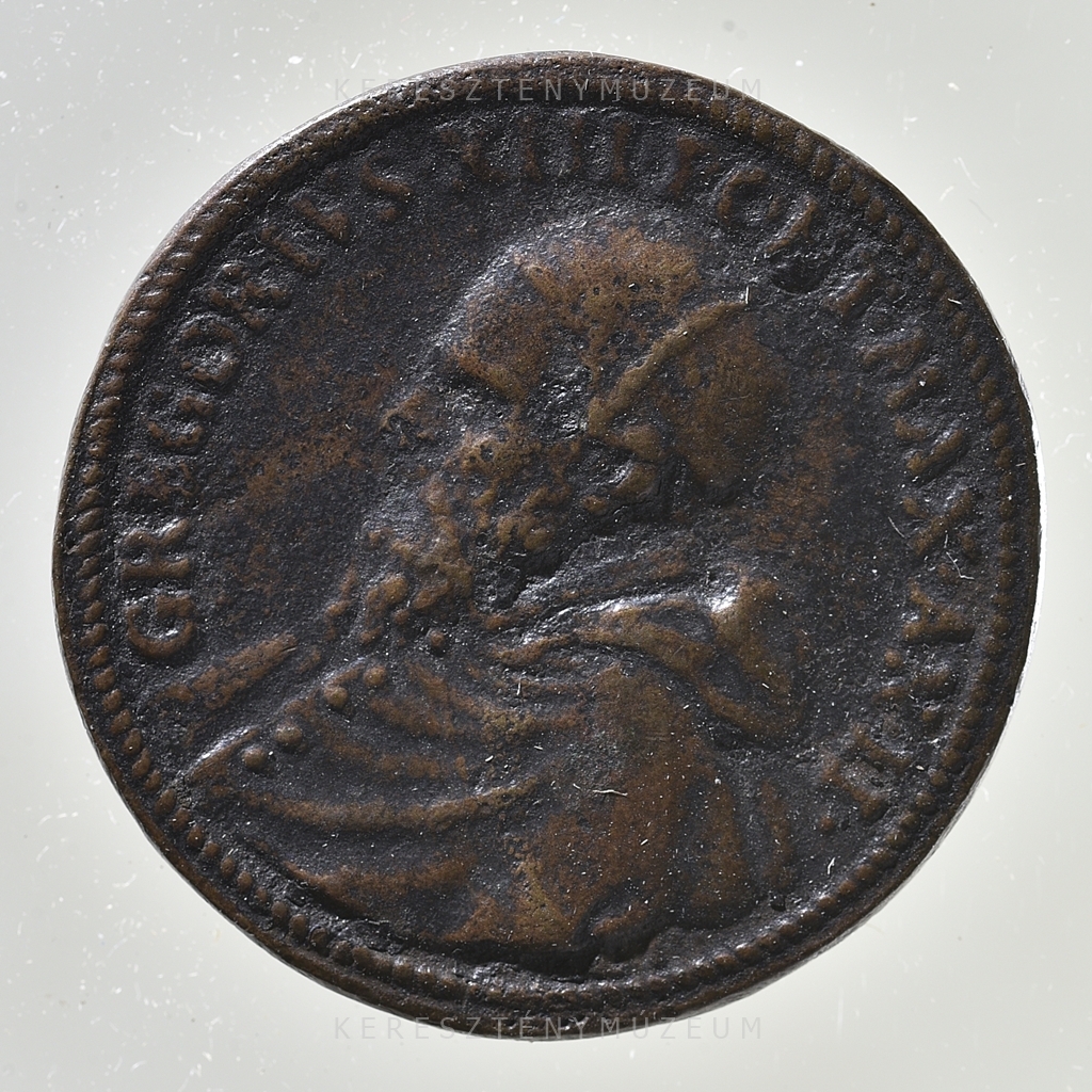 Előlap: GREGORIVS • XIII • PONT • MAX • AN • II • | Hátlap: • ET • PORTAE • CAELI • APERTAE • SVNT • | Szelvényben: • ROMA •
