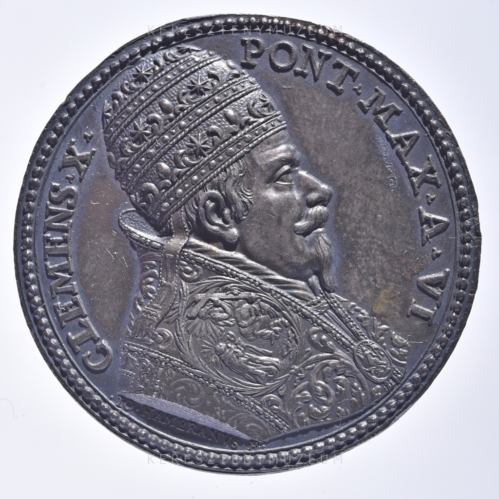 Alkalmi érem, amelyet 1675. december 24-én bocsátottak ki, a vatikáni Szent Péter-bazilika Szent Kapuja bezárásának emlékére. Előlap: gyöngysoros keretben a pápa arcképe jobb nézetből. Vállán palást, fején tiara. A palást mellcsatján a feltámadott, győzedelmes Krisztus képe. Hátlap: gyöngysoros keretben a Szent Kapu zárásának szertartása kíváló részletességgel. A pápa egyházfői ornátusban, mögötte, és előtte a püspöki kar palástban, infulában, balról szerzetes tartja a pápai keresztet. Egy diakónus féltérden fogja a pápa palástjának szegélyét, míg ő az első zárótéglát elhelyezi a kapupillérek közé. Jobbról a padlón kőmüveskanál és tálban falazó habarcs, oldalt a Svájci Gárda alabárdosa. A még nyitott kapun keresztül látszik a bazilika belső tere.