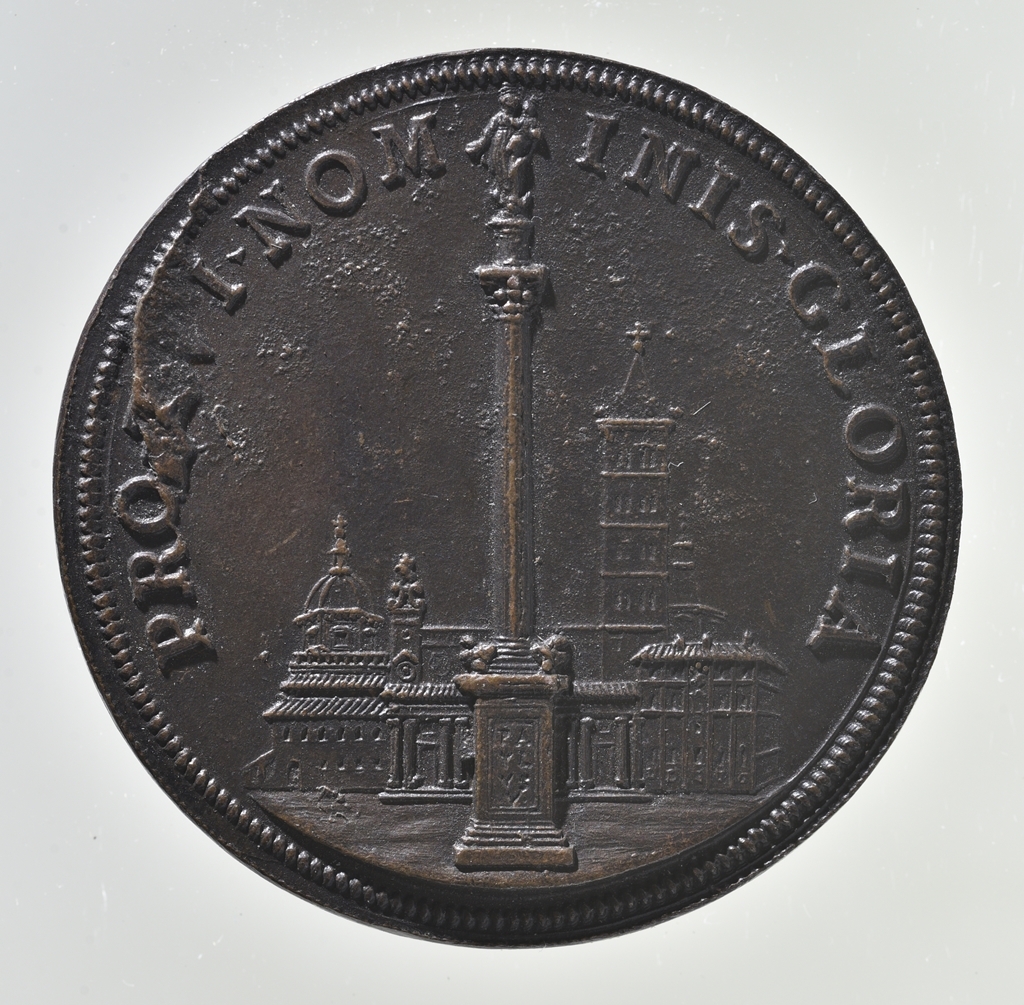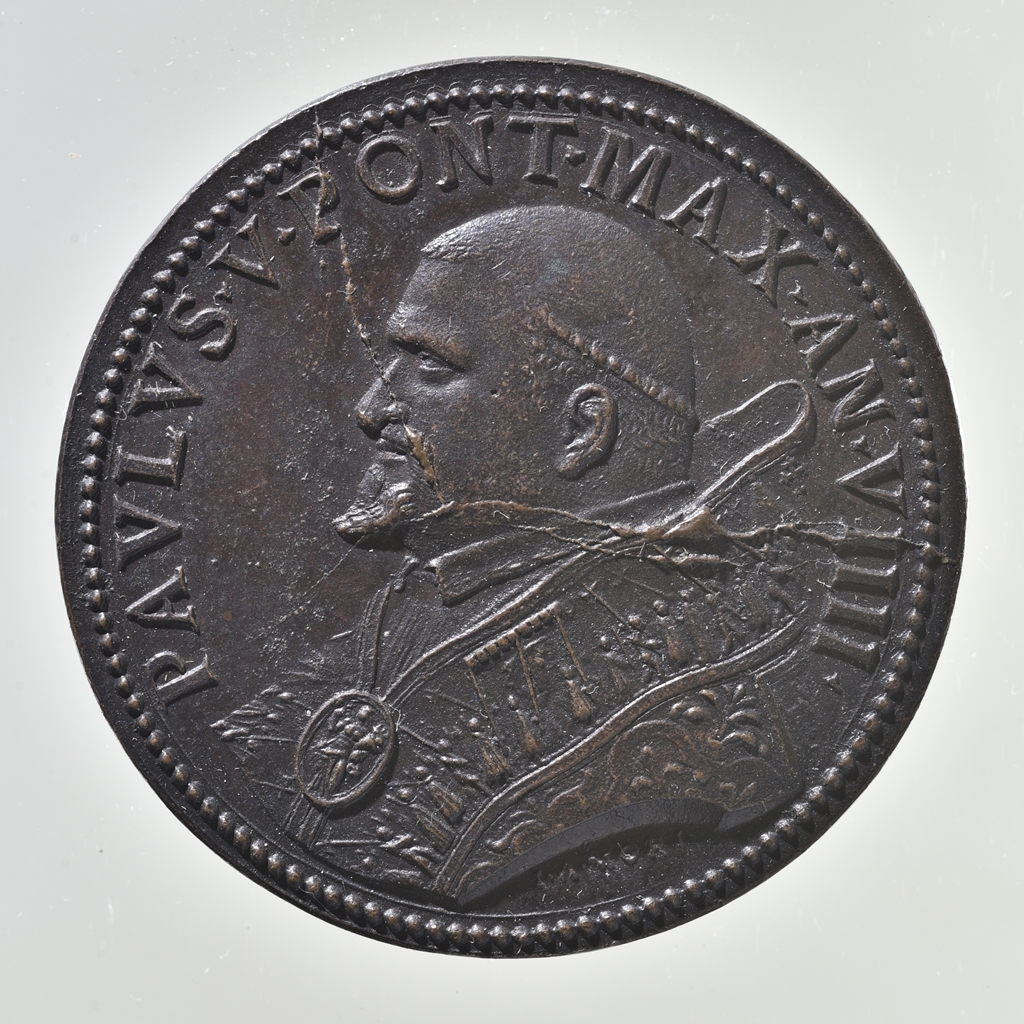 Előlap: PAVLVS•V•PONT•MAX•AN•VIIII•|Hátlap: PRO TVI•NOM_IGNIS•GLORIA| a szobor talapzatán: PA|VL|VS|V •